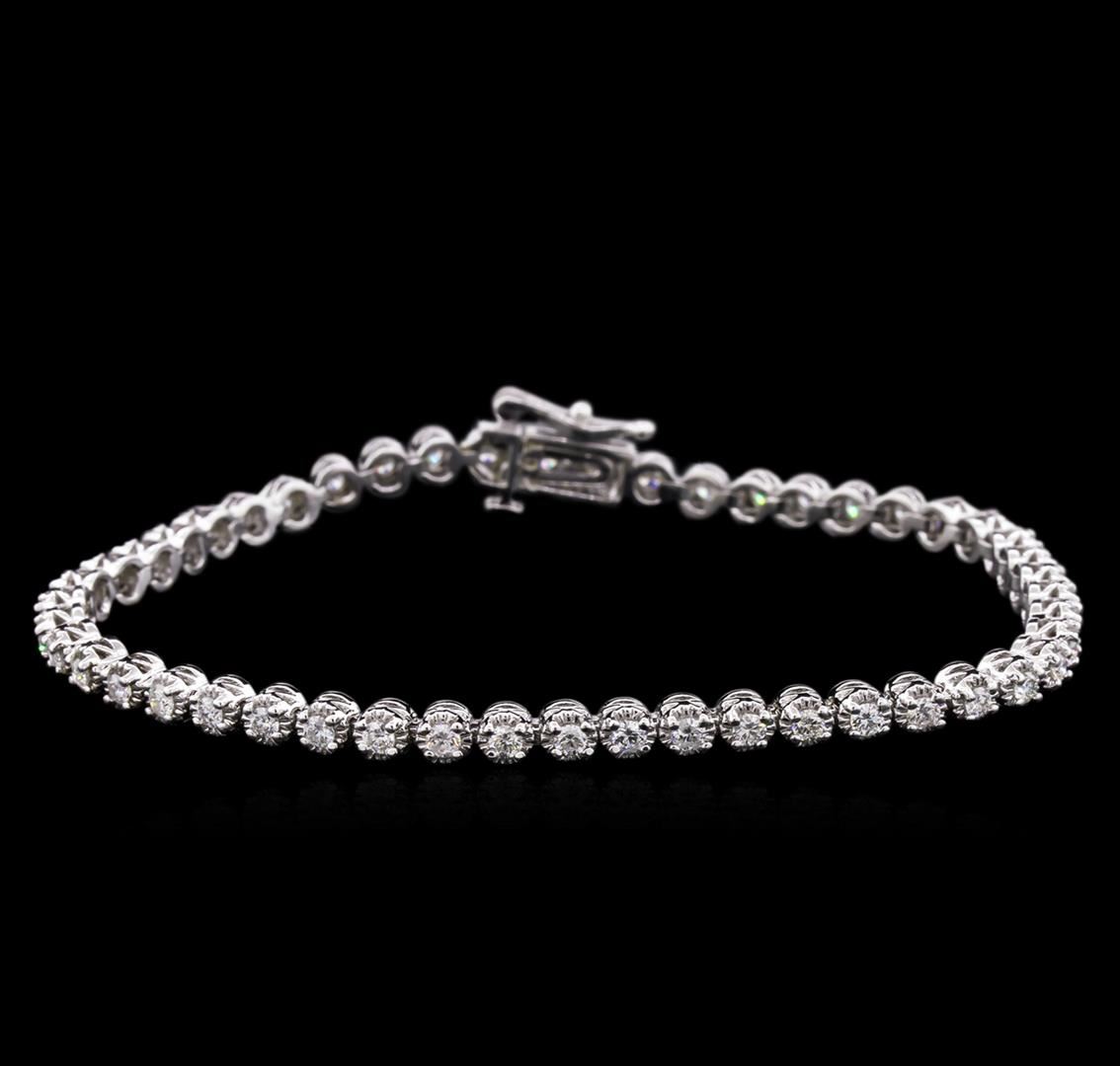 One electronically tested 14KT white gold lady's combination cast & assembled tennis bracelet with a tongue clasp with foldover safety with a bright polish finish. The featured lady's bracelet measures 7 inches in length. Identified with markings of "14K". Condition is new, good workmanship. Containing: Forty-Nine prong set round brilliant cut diamonds, measuring 2.10 - 2.00 x 1.31mm (depth est.) approximate total weight of 49 Stones = 1.65ct. Graded in the setting. Clarity: SI-1 to SI-2. Color: G - I. Cut Good. Total Weight of Diamonds 1.65ct. Total Weight of Bracelet 10.10gm. GAS Appraised.