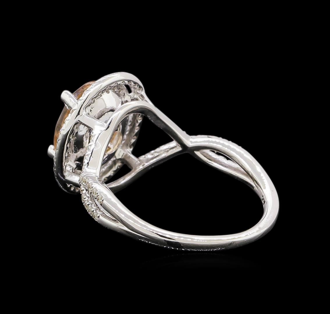 One ring : 14KT white gold weighing 3.3gm containing one morganite with a total weight of 1.65ct and diamonds weighing 0.5ctw.