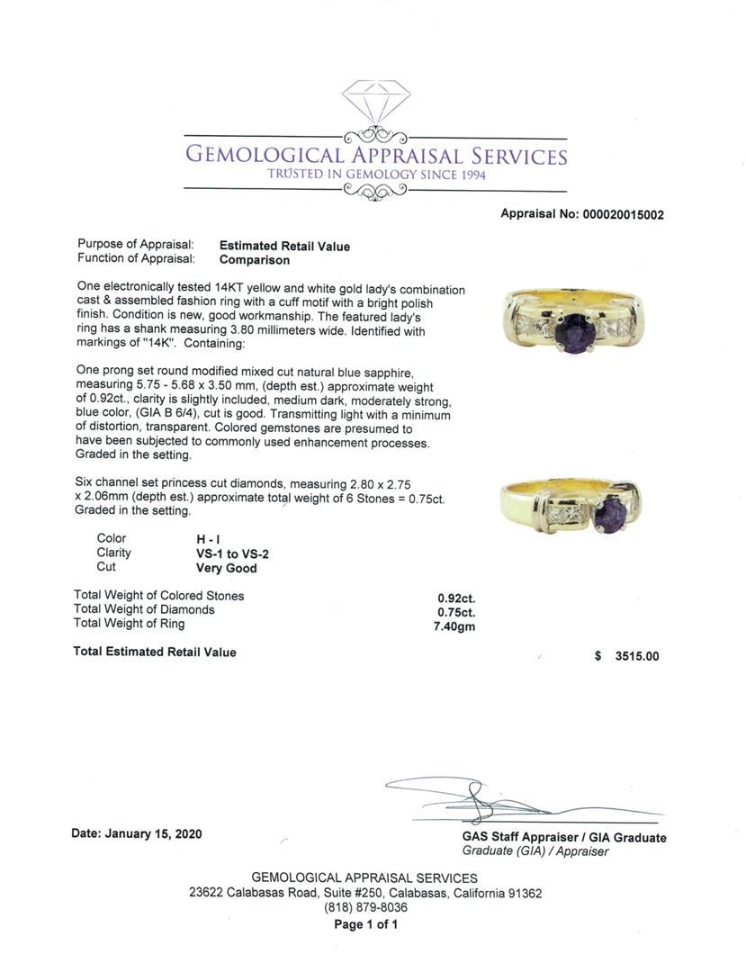 One electronically tested 14KT yellow and white gold lady's combination cast & assembled fashion ring with a cuff motif with a bright polish finish. The featured lady's ring has a shank measuring 3.80 millimeters wide. Identified with markings of '14K'. C