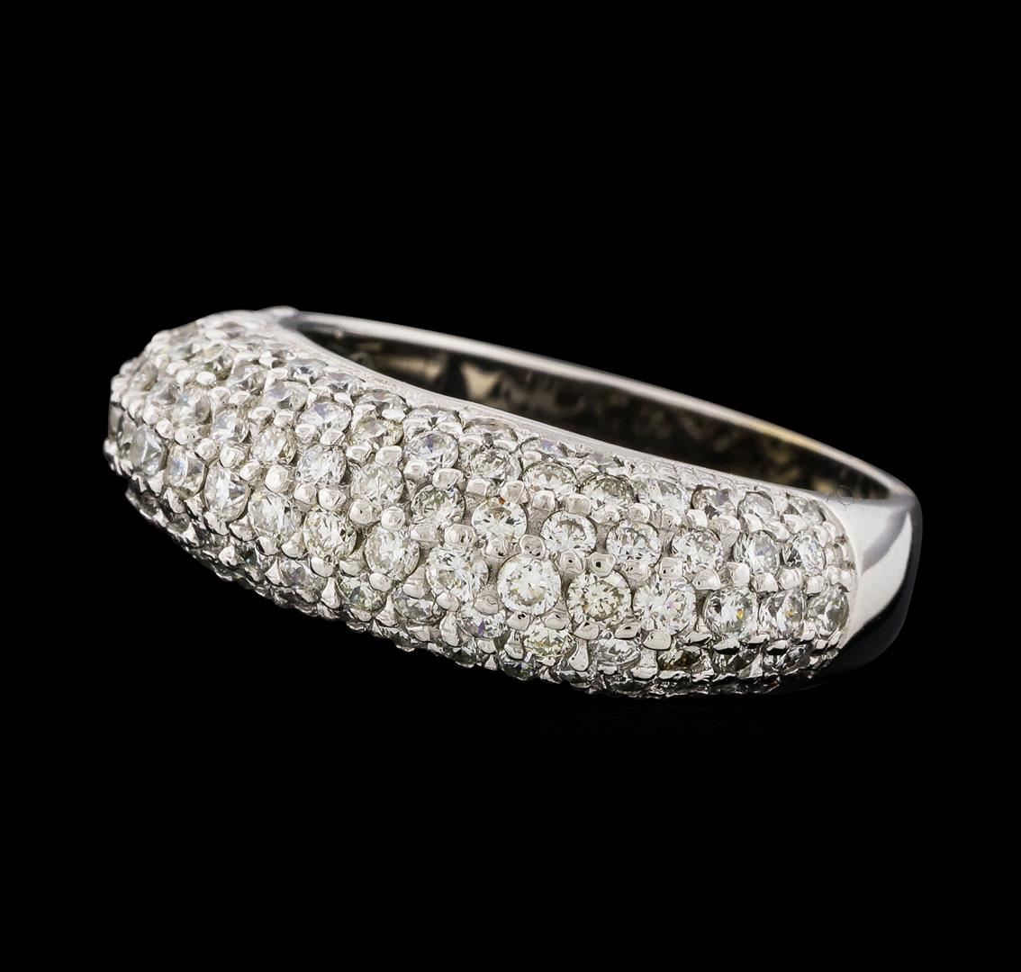 One electronically tested 14KT white gold lady's cast fashion ring with a pointed shank with a bright polish finish. The featured lady's ring has a shank measuring 3.46 millimeters wide. Identified with markings of '14K'. Condition is new, good workmanship. Containing: Nineteen prong set round brilliant cut diamonds, measuring 1.85 - 1.75 x 1.12mm (depth est.) approximate total weight of 19 Stones = 0.42ct. Graded in the setting. Clarity SI-1 to SI-2. Color: H - I Cut Good Seventy-Four prong set round brilliant cut diamonds, measuring 1.60 - 1.50 x 0.96mm (depth est.) approximate total weight of 74 Stones = 1.05ct. Graded in the setting. Clarity SI-1 to SI-2. Color: H - I Cut Good Twenty prong set round brilliant cut diamonds, measuring 1.40 - 1.35 x 0.86mm (depth est.) approximate total weight of 20 Stones = 0.20ct. Graded in the setting. Clarity SI-1 to SI-2. Color: H - I Cut Good. Total Weight of Diamonds 1.67ct.. Total Weight of Ring 5.40gm. GAS Appraised at $5,240.00.