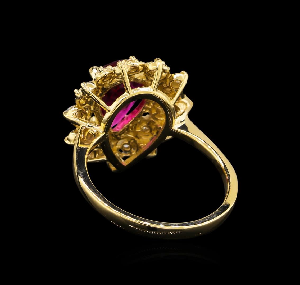 One ring featuring: 14KT yellow gold weighing 4.48 grams containing one pink topaz with a total weight of 1.67ct and side diamonds with a total weight of 0.41ct.