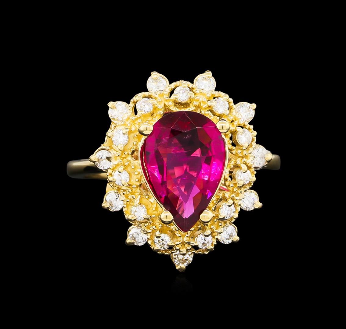 One ring featuring: 14KT yellow gold weighing 4.48 grams containing one pink topaz with a total weight of 1.67ct and side diamonds with a total weight of 0.41ct.