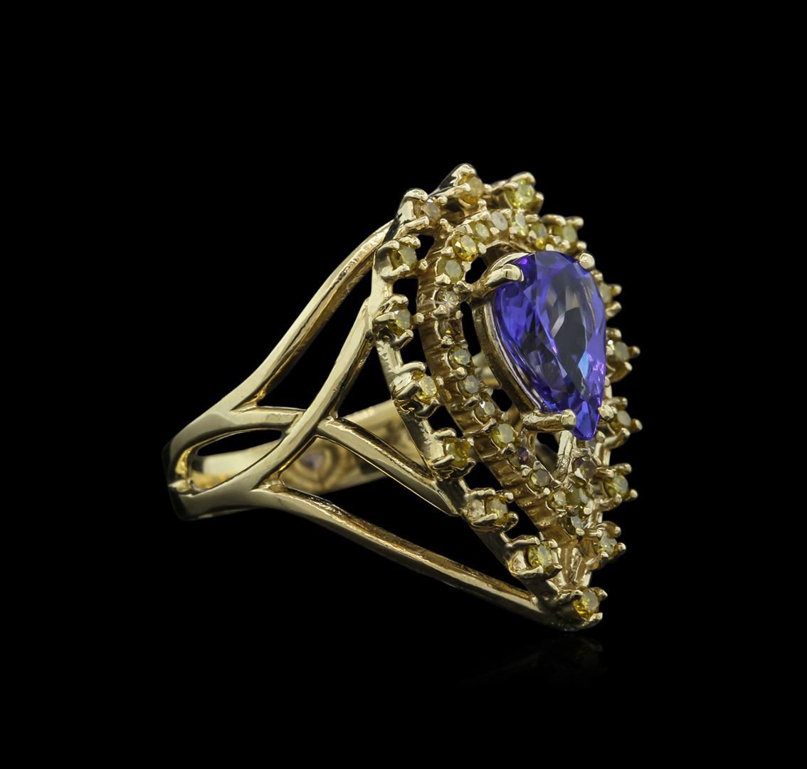 One ring featuring: 14KT yellow gold weighing 6.09 grams containing one tanzanite with a total weight of 1.67ct and 42 diamonds with a total weight of 0.48ct.