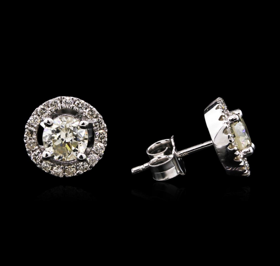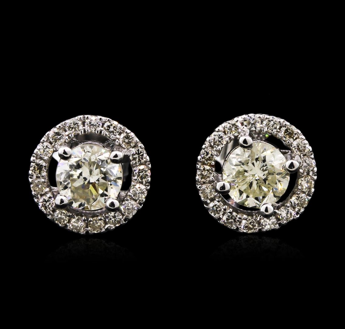 One pair of earrings featuring: 14KT white gold weighing 2.63 grams containing two diamond center stones with a total weight of 1.31ct and side diamonds with a total weight of 0.37ct.