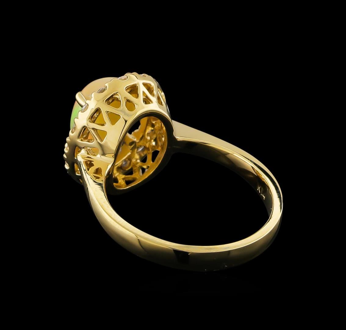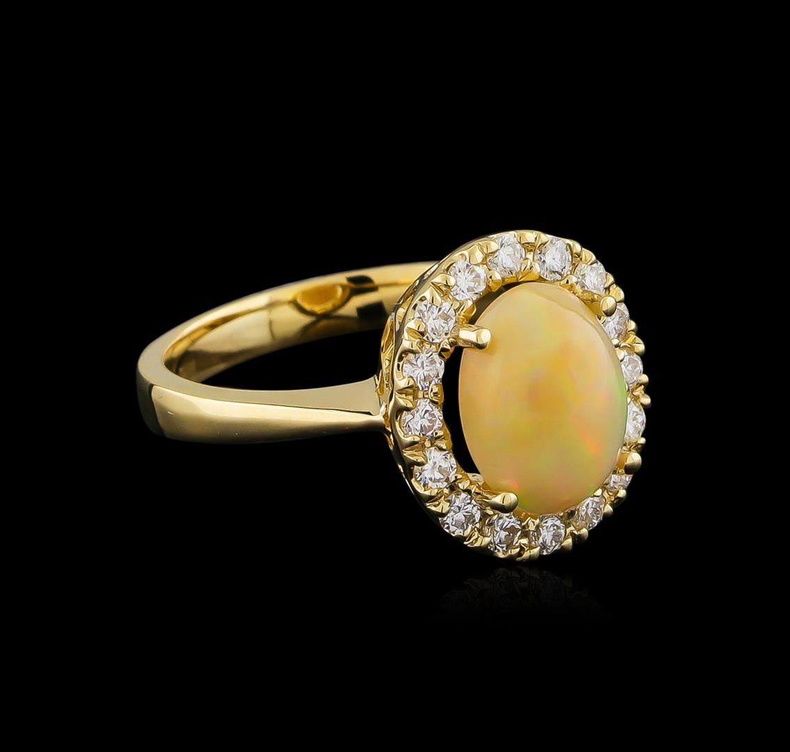 One ring featuring: 14KT yellow gold weighing 4.48 grams containing one opal center stone with a total weight of 1.70 ct and diamonds with a total weight of 0.40 ct.