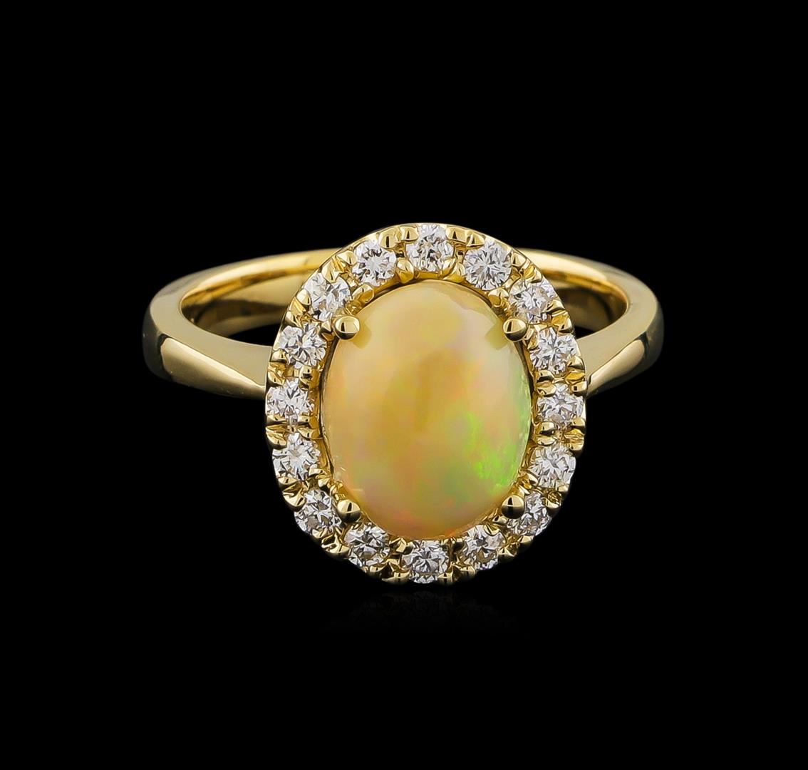 One ring featuring: 14KT yellow gold weighing 4.48 grams containing one opal center stone with a total weight of 1.70 ct and diamonds with a total weight of 0.40 ct.