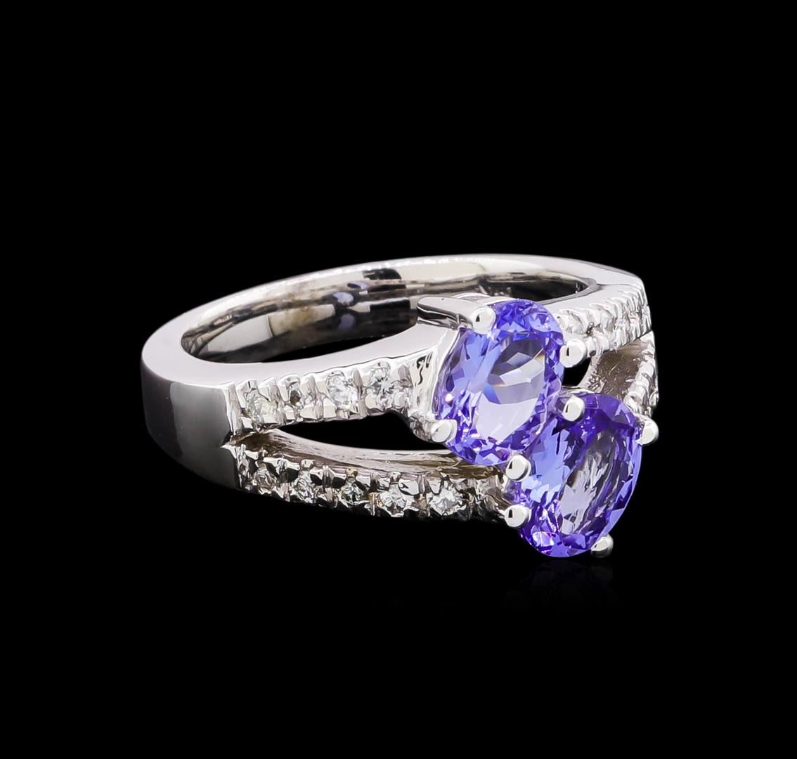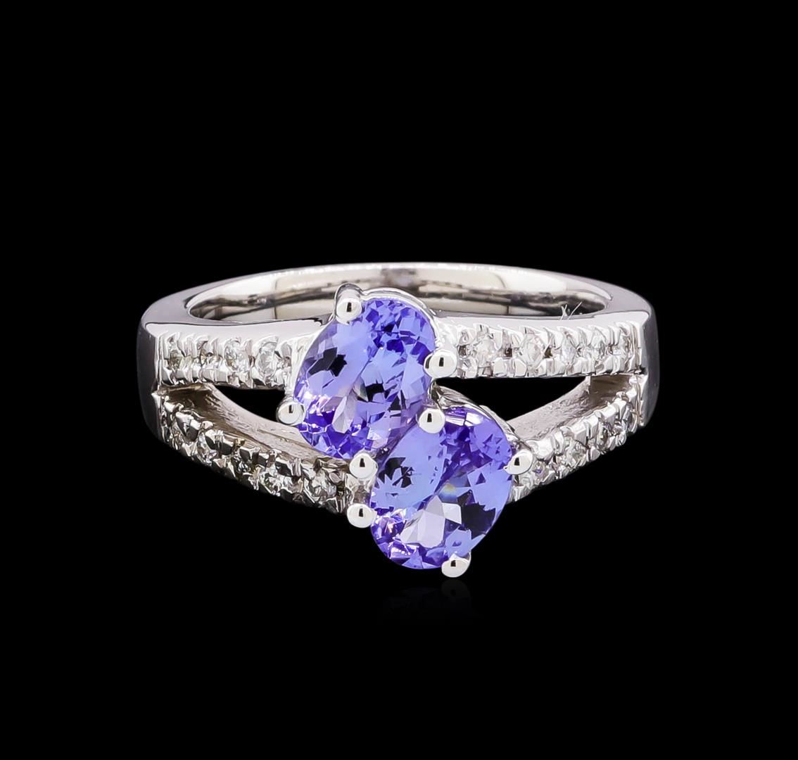 One ring featuring: 14KT white gold weighing 8.05 grams containing two tanzanite with a total weight of 1.70ct and diamonds with a total weight of 0.25ct.
