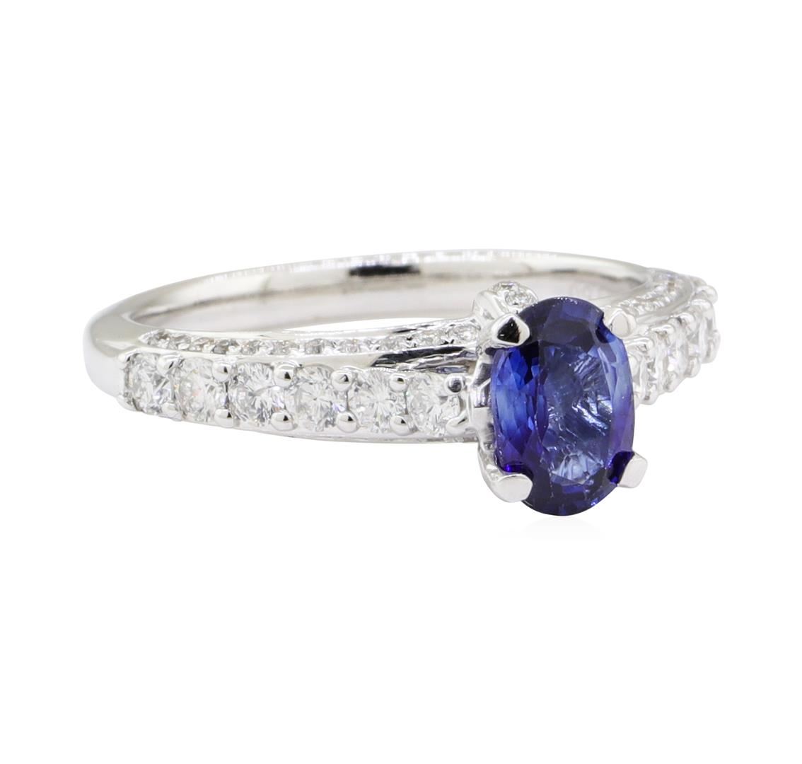 One electronically tested 18KT white gold lady's combination cast & assembled fashion ring with a three sided cathedral shank with a bright polish finish. The featured lady's ring has a shank measuring 2.00 millimeters wide. Identified with markings of '7