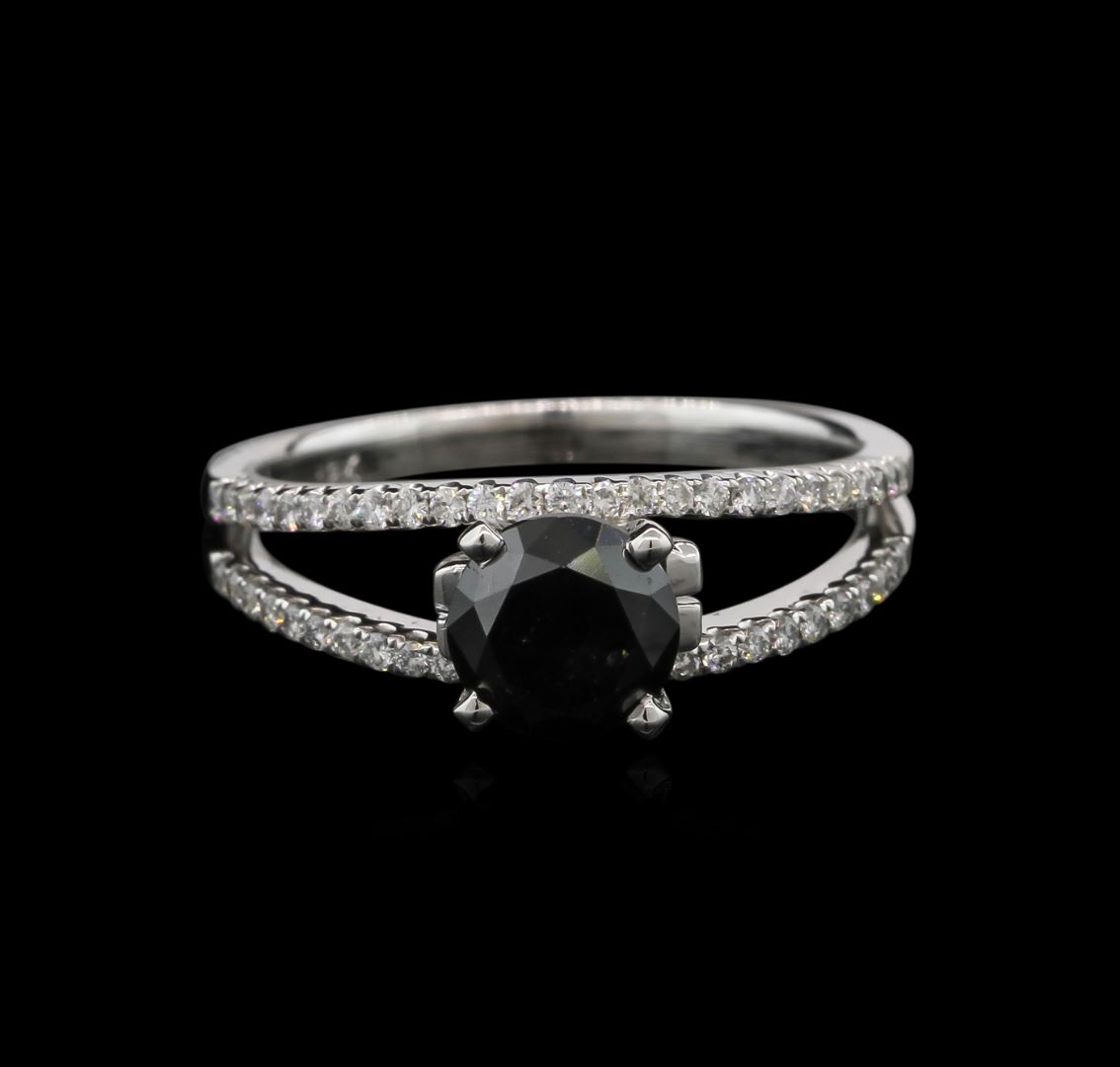 One ring featuring: 18KT white gold weighing 4.05 grams containing one prong set round black diamond center stone with a total weight of 1.35ct and prong set round white diamonds with a total weight of 0.36ct.