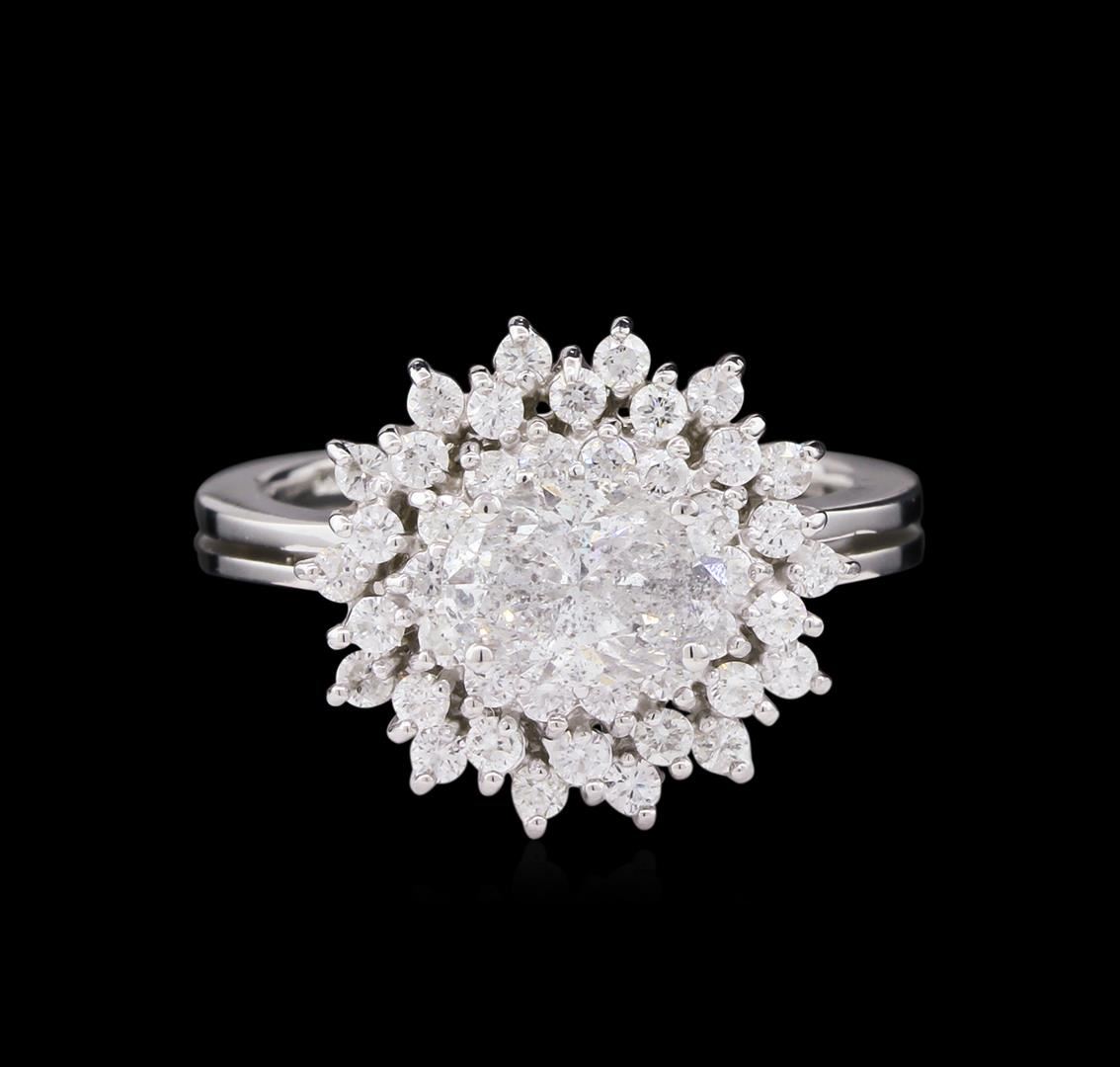One electronically tested 14KT white gold lady's cast wedding ring with a split shank double halo with a bright polish finish. The featured lady's ring has a shank measuring 2.98 millimeters wide. Identified with markings of "585". Condition is new, good workmanship. Containing: One prong set oval shaped cut diamond, measuring 7.72 x 5.63 x 3.55mm (depth est.) , 8.00% GTCF approximate weight of 1.13ct. Graded in the setting. Clarity: I-2. Color: G - Good Forty-Two prong set round brilliant cut diamonds, measuring 1.60 - 1.50 x 0.98mm (depth est.) approximate total weight of 42 Stones = 0.60ct. Graded in the setting. Clarity: SI-1 to I-1. Color: G - Good. Total Weight of Diamonds 1.73ct. Total Weight of Ring 5.00gm. GAS Appraised at $7,845.00.