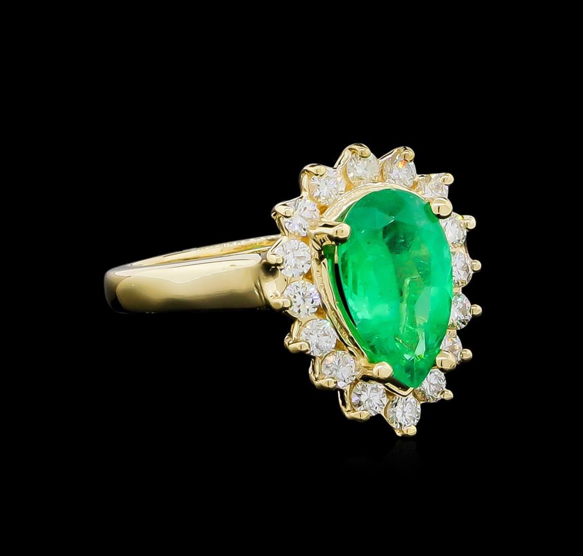 One ring featuring: 14KT yellow gold weighing 5.41 grams containing one emerald with a total weight of 1.73ct and side diamonds with a total weight of 0.55ct.