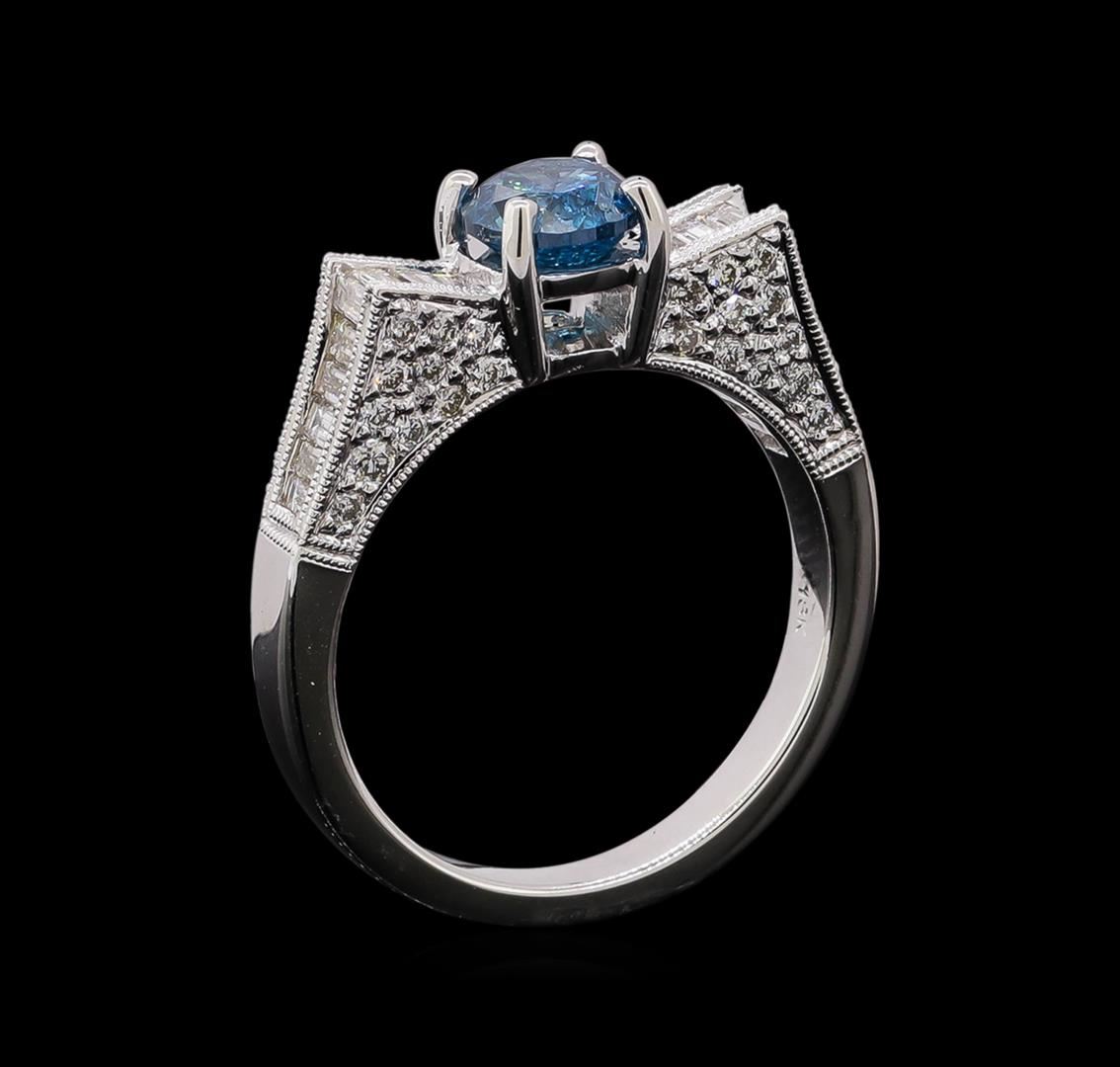 One ring : 18KT white gold weighing 5.6gm containing one blue diamond with a total weight of 0.89ct and diamonds weighing 0.85ctw.