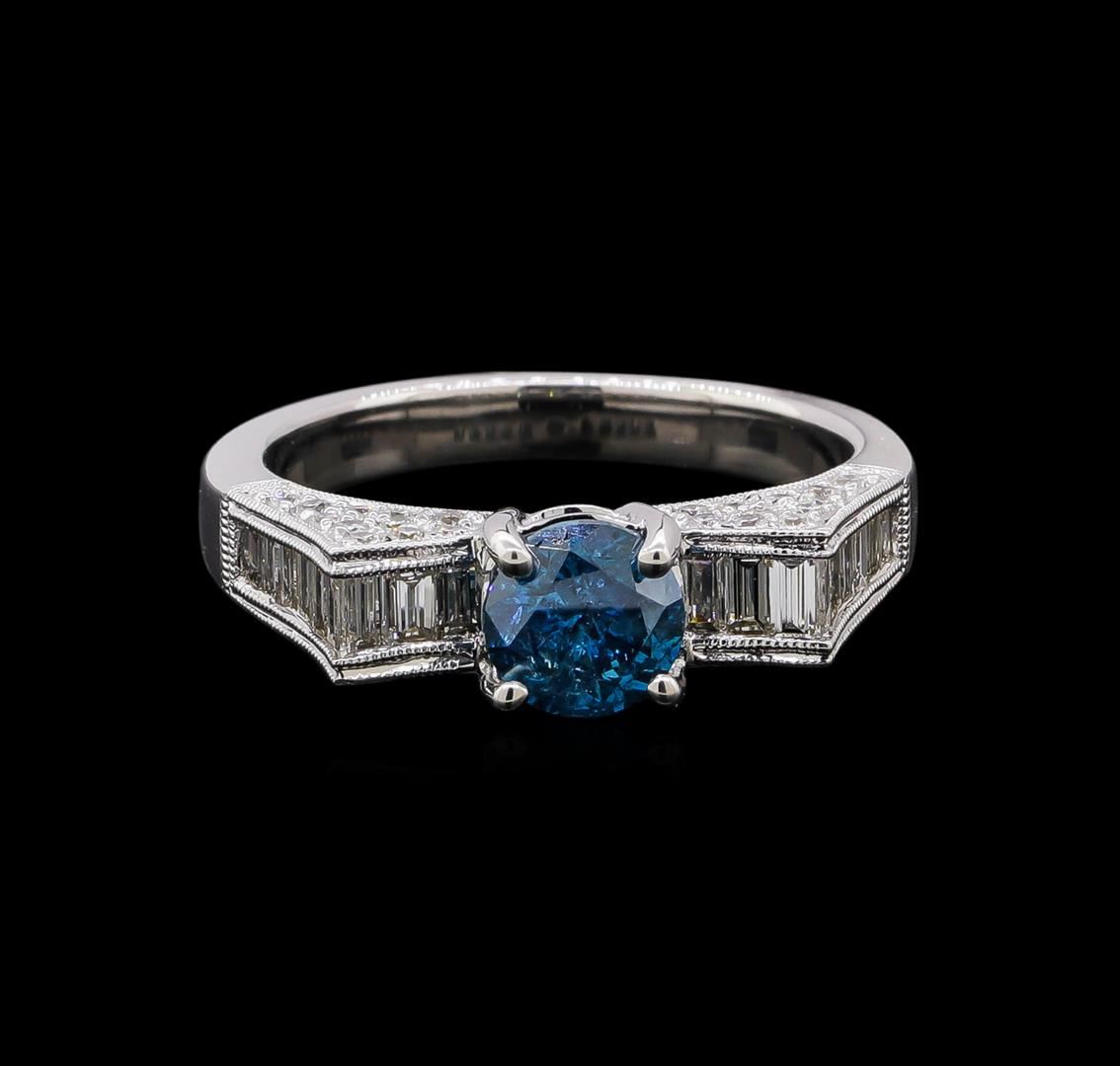 One ring : 18KT white gold weighing 5.6gm containing one blue diamond with a total weight of 0.89ct and diamonds weighing 0.85ctw.