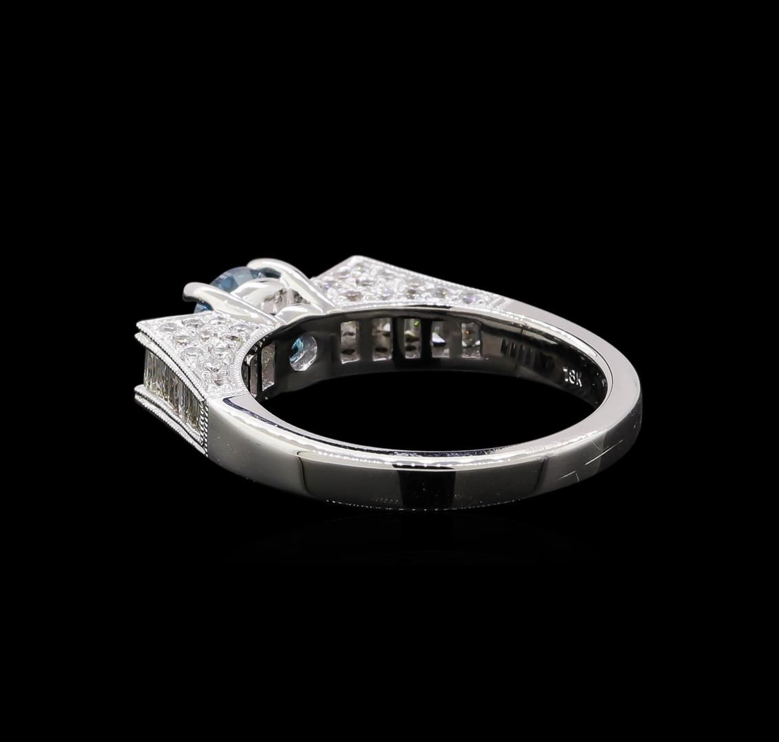One ring : 18KT white gold weighing 5.6gm containing one blue diamond with a total weight of 0.89ct and diamonds weighing 0.85ctw.