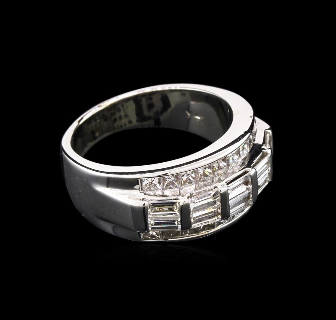 One electronically tested 14KT white gold lady's cast fashion ring with a tapered shank with a bright polish finish. The featured lady's ring has a shank measuring 4.20 millimeters wide. Identified with markings of "14K". Condition is new, good workmanship. Containing: Ten channel set baguette cut diamonds, measuring from 3.80 x 1.75 x 1.49mm (depth est.) to 4.00 x 2.00 x 1.70mm (depth est.) approximate total weight of 10 Stones = 1.10ct. Graded in the setting. Clarity: VS-2 to SI-2. Color: G - H. Cut Good Twenty channel set princess cut diamonds, measuring 1.80 x 1.70 x 1.28mm (depth est.) approximate total weight of 20 Stones = 0.65ct. Graded in the setting. Clarity: VS-2 to SI-1. Color: G - I. Cut Very Good. Total Weight of Diamonds 1.75ct. Total Weight of Ring 10.80gm. GAS Appraised at $4,955.00.