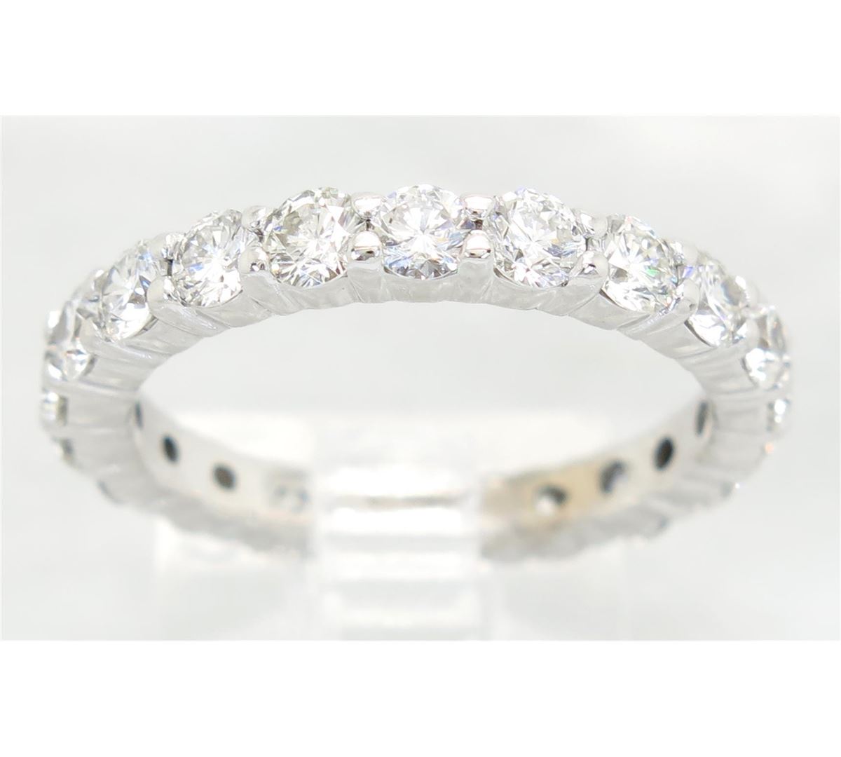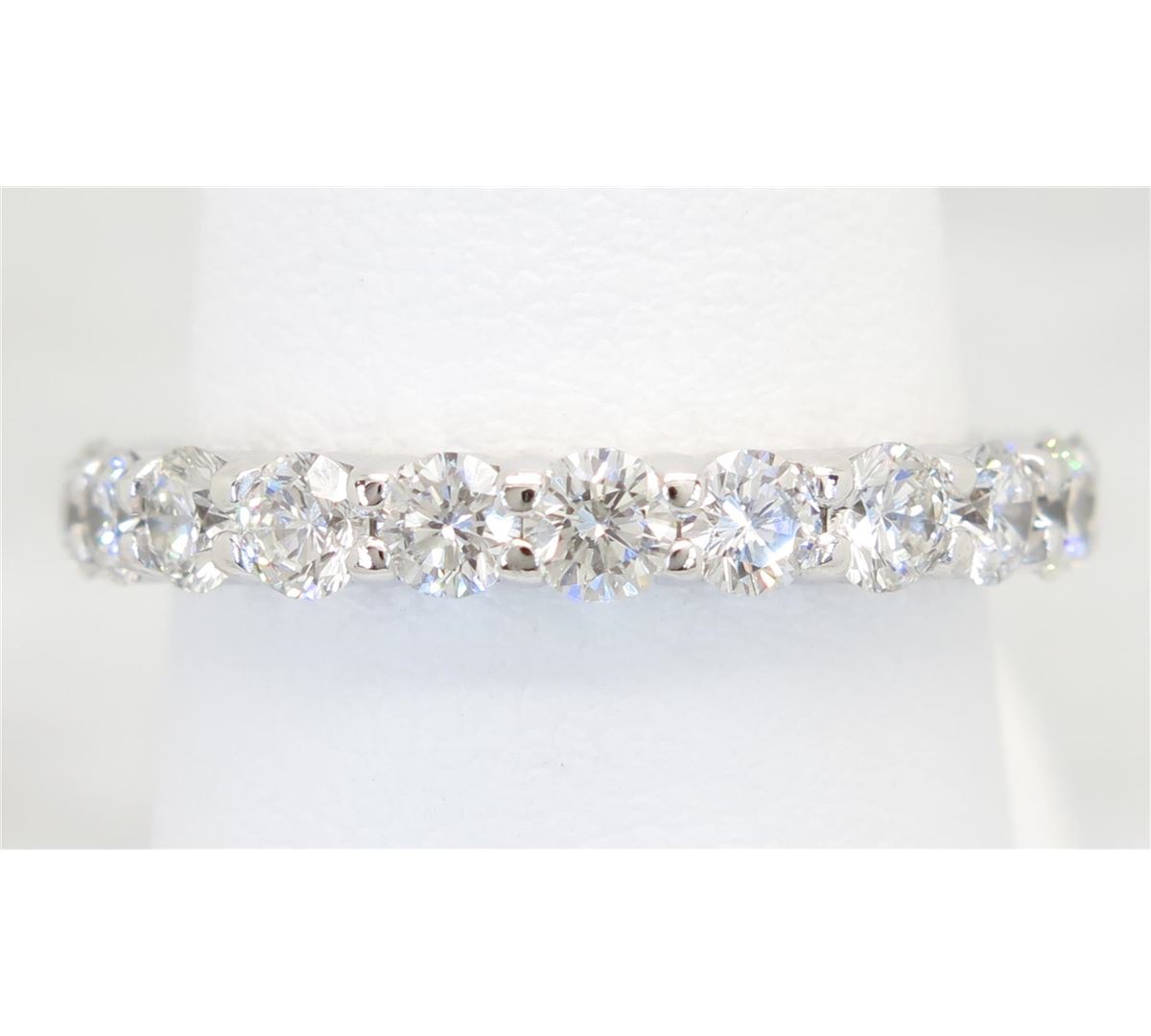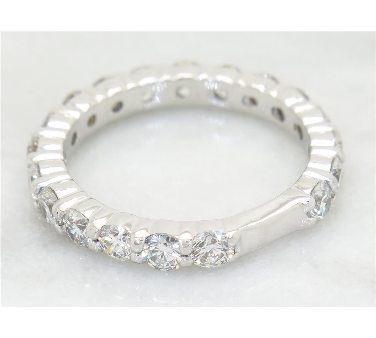One tested 14K white gold diamond ring. Containing: 19 Round Brilliant Cut Diamonds. Clarity: VS-SI, Color: G-I. Approximate total diamond weight: 1.75CTW. All diamonds are graded in the mounting unless otherwise stated. Weight of ring: 4.3 grams, Size: 6.0.