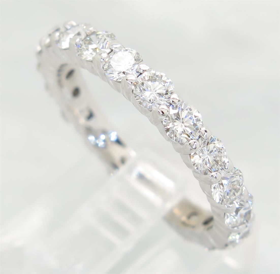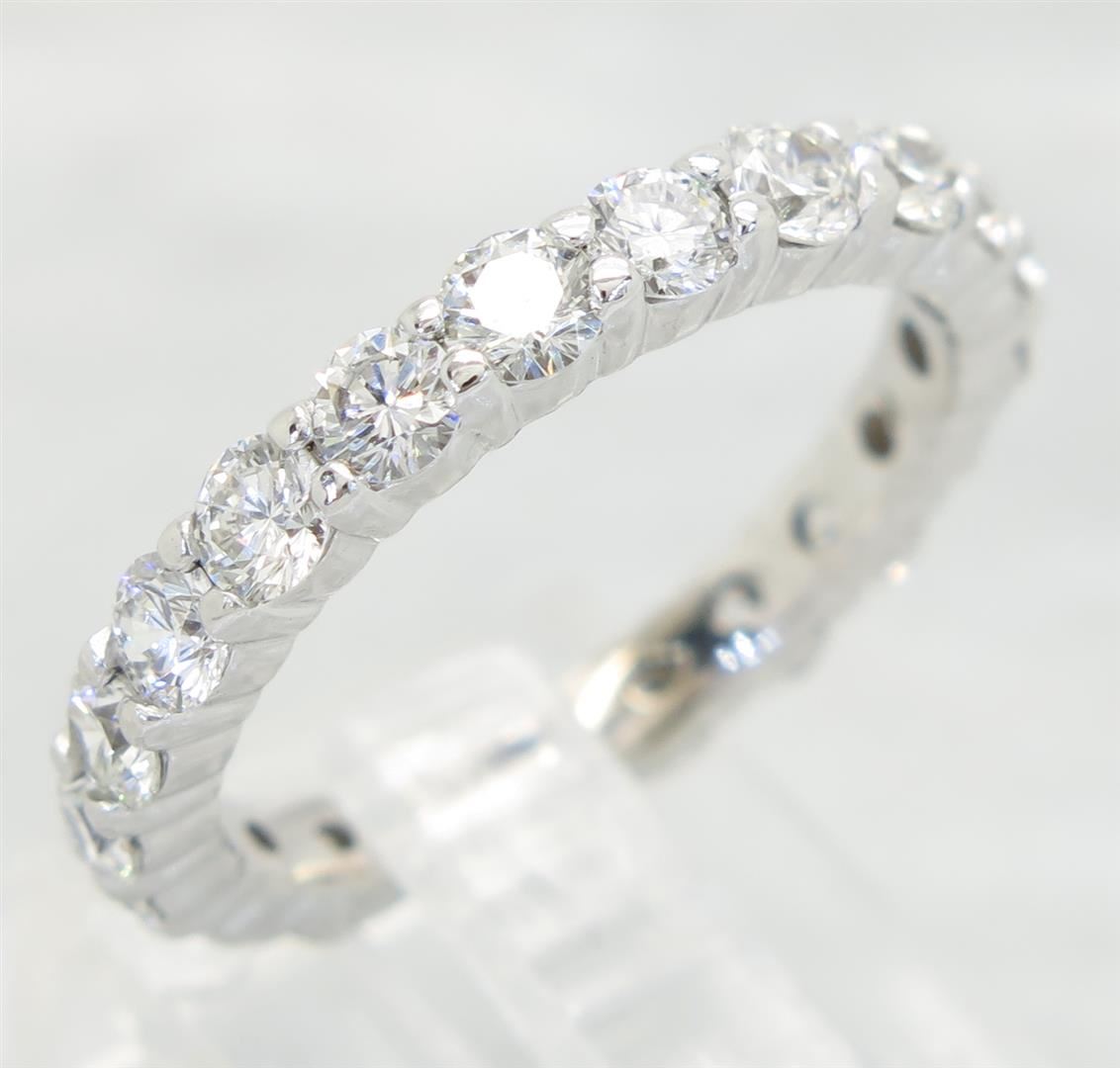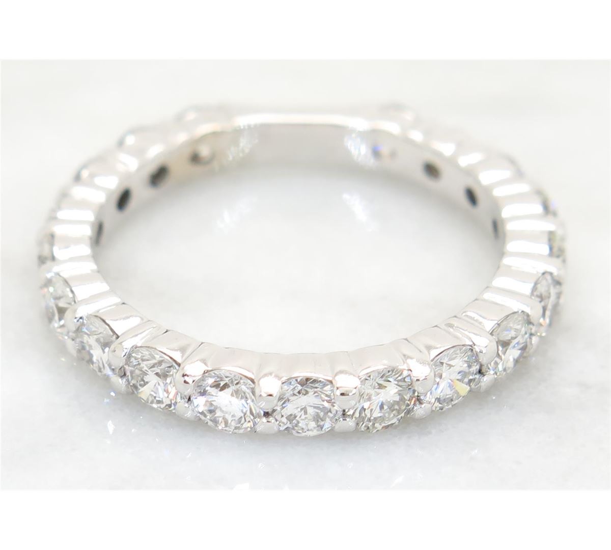 One tested 14K white gold diamond ring. Containing: 19 Round Brilliant Cut Diamonds. Clarity: VS-SI, Color: G-I. Approximate total diamond weight: 1.75CTW. All diamonds are graded in the mounting unless otherwise stated. Weight of ring: 4.3 grams, Size: 6.0.
