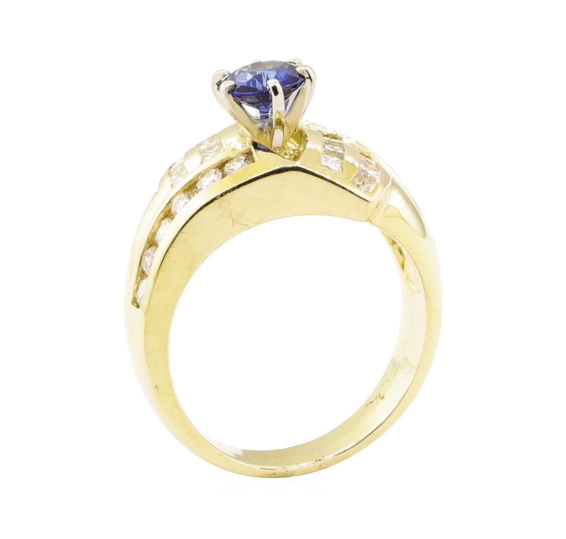 One electronically tested 14KT yellow gold lady's combination cast & assembled fashion ring with a offset bypass shank with a bright polish finish. The featured lady's ring has a shank measuring 3.80 millimeters wide. Identified with markings of '14K'. Co