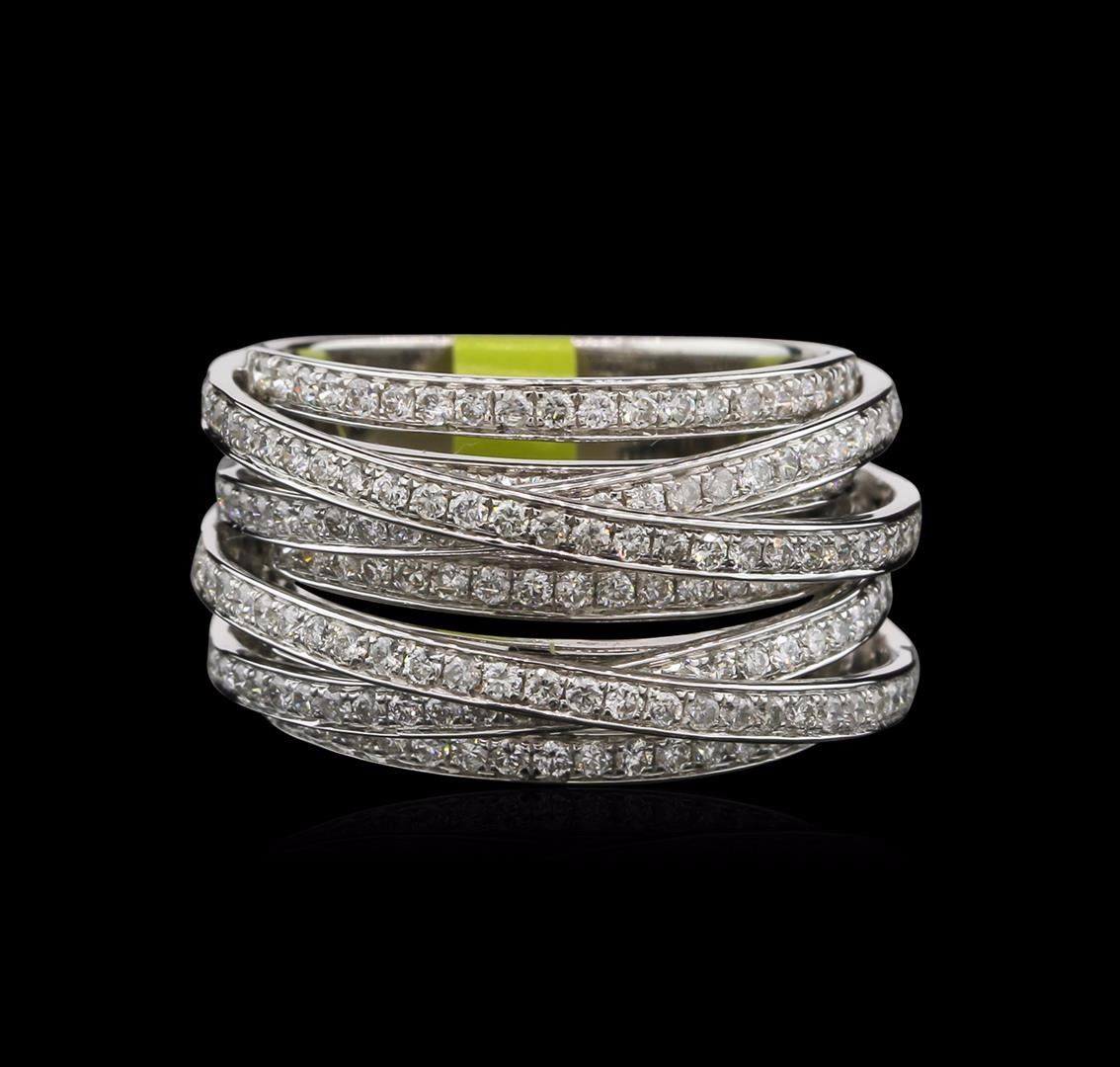 One electronically tested 14KT white gold lady's cast diamond ring with a tapered shank with a bright polish finish. Identified with markings of "14K". Condition is new, good workmanship. Containing: Two Hundred Ten bead set round brilliant cut diamonds, measuring 1.30 - 1.25 x 0.83mm (depth est.) approximate. Total Weight of 210 Stones = 1.78ct. Graded in the setting. Clarity: VS-2 to SI-1. Color: G - I. Cut Good. Total Weight of Diamonds 1.78ct. Total Weight of Ring 10.00gm. GAS Appraised at $9,925.00.
