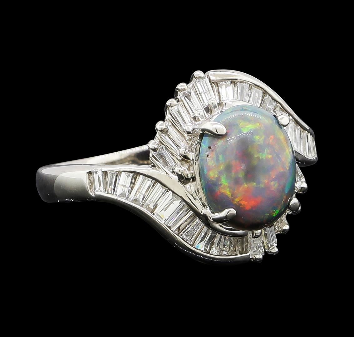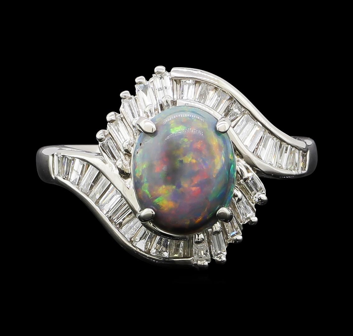 One ring featuring: Platinum containing Black Opal with a total weight of 1.80ct and Diamonds with a total weight of 0.60ct. Total Weight of Ring: 7.7 grams.