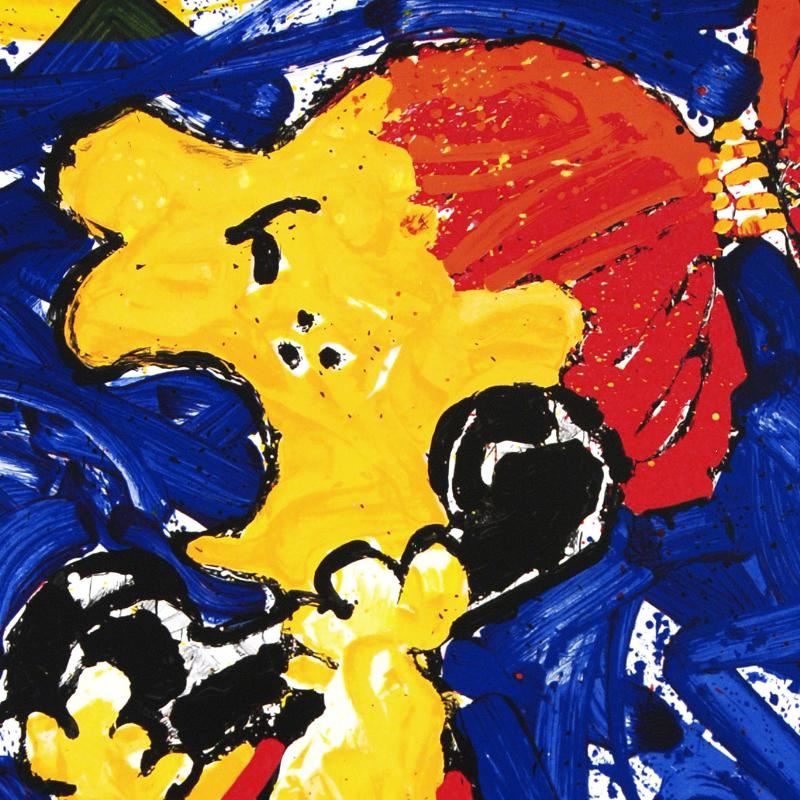 Master Artist Tom Everhart is the protege of famed "Peanuts" creator, Charles M. Schulz (1922-2000). As the only artist in the world granted the rights to draw the "Peanuts" characters in his own work, Everhart creates vibrant, extremely collectible rainbow masterpieces featuring Snoopy, Woodstock and the gang. "1-800 My Hair is Pulled too Tight" is a limited edition hand pulled original lithograph on museum quality paper, numbered and hand signed by Everhart! Includes Certificate of Authenticity! Measures approx. 27.5" x 42.5" (with border); 25" x 40" (image). This artwork was created on one of two rare antique Marinoni Voirin lithograph presses that date back to the 1800's, and are reputed to come from the Paris print shop used by Henri Toulouse-Lautrec. There are only 7 of these magnificent beasts left in the world: the smaller one (with a print bed size of 25" x 35"), weighs 9 tons, and the larger one weighs in at 11 tons (print bed size 31" x 47"). The significance of this is that the lithographs produced by this method are of the finest quality, using techniques that are so labor and time intensive that very few master printers know how to operate and care for these presses today. Each lithograph is created with hand-mixed colors applied one at a time - a highly trained and synchronized team must hand feed each museum-quality sheet of paper through the press numerous times in order to set the colors and impressions, while the Chromist - a trained color specialist - adjusts each color by look and feel to match the original artwork, as if mixing a potion. The result is an image with maximum pigment saturation, formed through rich layers of color that imbue the artwork with a permanency of brilliance - proven over centuries to last. In contrast, today's printers use a method more akin to a dot matrix style application, with the colors all premixed and sprayed onto a sheet in a uniform layer, resulting in a much less saturated image that is susceptible to fading and imperfect color reproduction This is one of the final Tom Everhart editions to be printed using this very special technique.
