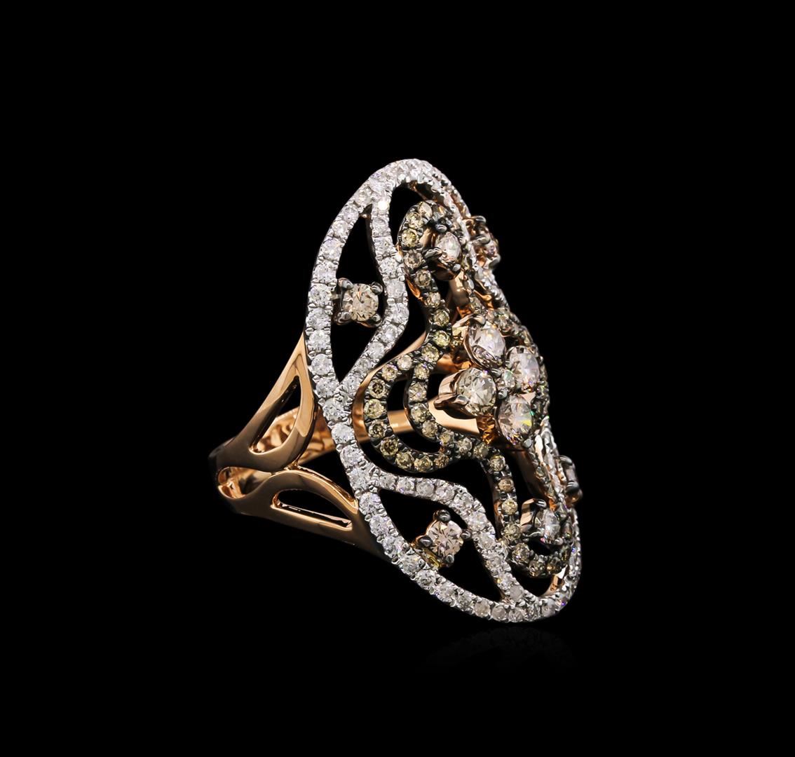 One ring featuring: 14KT rose gold weighing 6.85 grams containing 73 brown diamonds with a total weight of 1.10ct and 96 white diamonds with a total weight of 0.70ct.