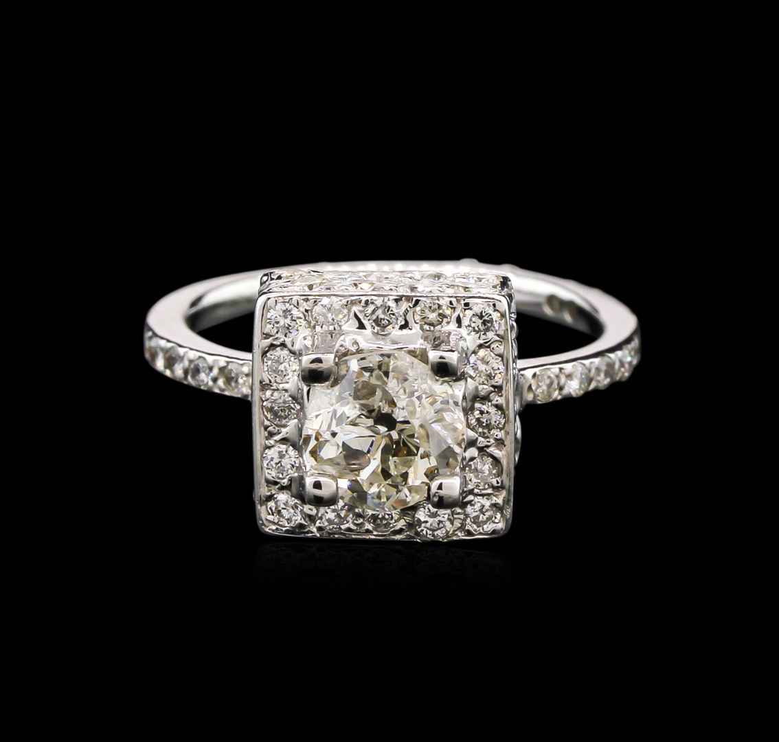 One electronically tested 14KT white gold lady's cast wedding ring with a halo with a bright polish finish. The featured lady's ring has a shank measuring 1.65 millimeters wide. Identified with markings of "14K". Condition is new, good workmanship. Containing: One prong set round brilliant cut diamond, measuring 6.17 - 6.08 x 3.99mm (depth est.) approximate weight of 0.92ct. Graded in the setting. Clarity: I-1. Color: J - K. Cut Good Eighty prong set round brilliant cut diamonds, measuring 1.50 - 1.30 x 0.91mm (depth est.) approximate total weight of 80 Stones = 0.88ct. Graded in the setting. Clarity: SI-2 to I-1. Color: I - Good. Total Weight of Diamonds 1.80ct. Total Weight of Ring 3.30gm. GAS Appraised at $9,180.00.