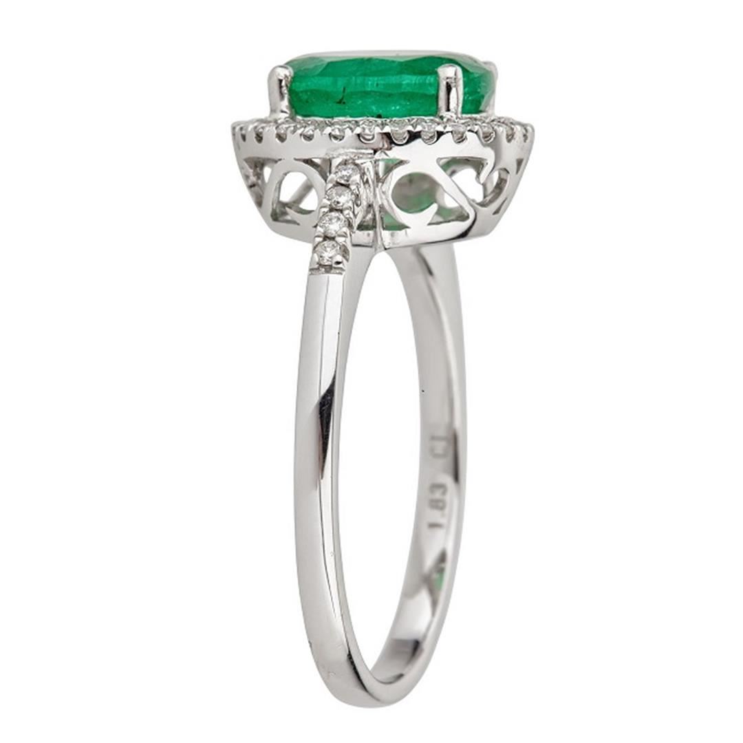 One Emerald and Diamond Ring featuring: 14KT White Gold weighing a total of 2.89 grams, Emerald with a total weight of 1.83ct, and 36 Diamonds with a total weight of 0.20ctw.