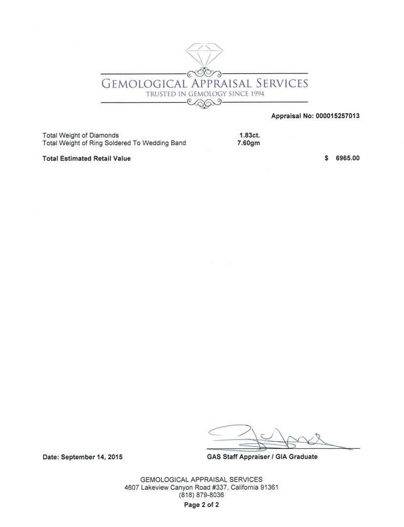 Regarding Appraised Jewelry, Watches and Loose Stones –