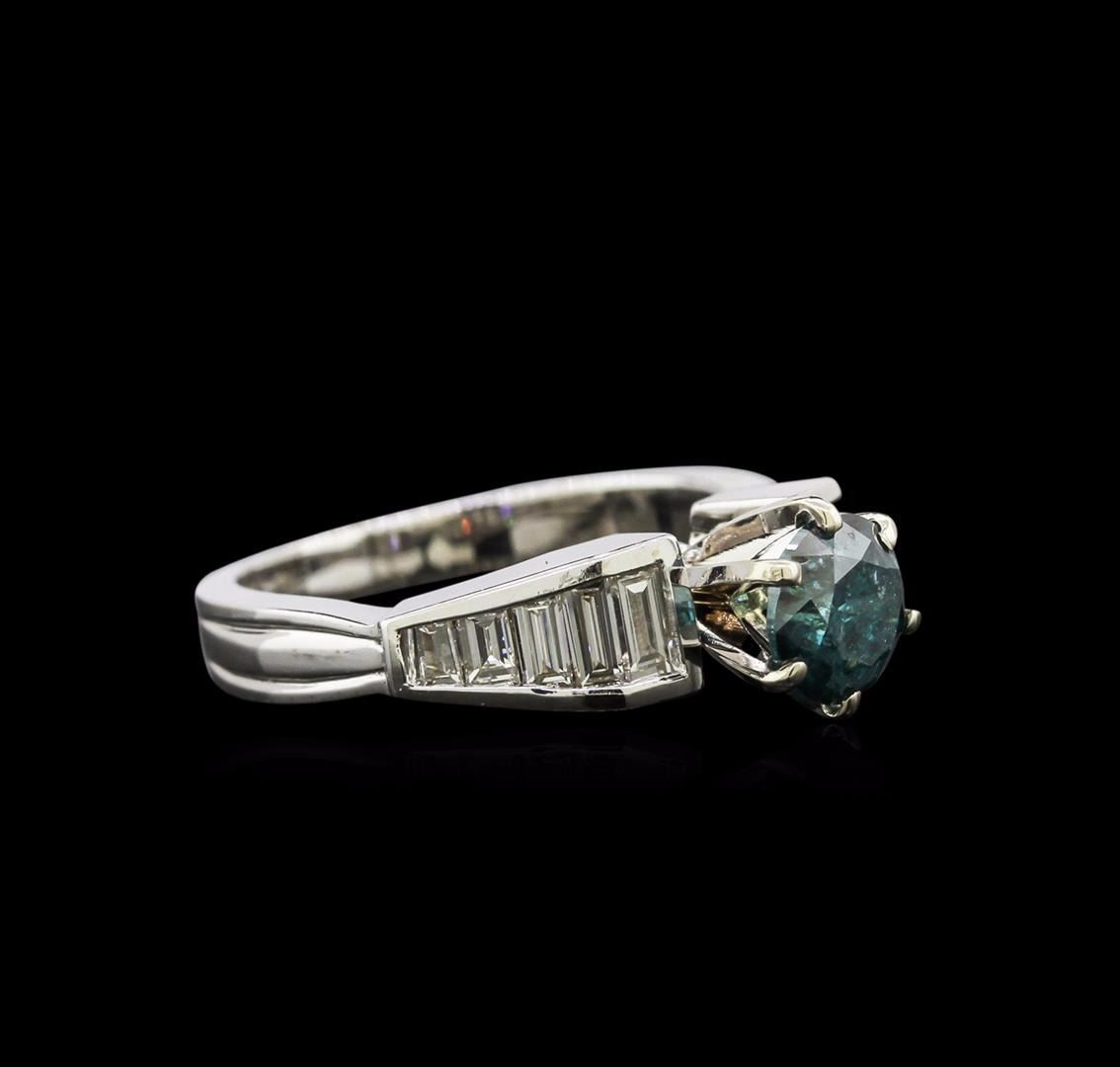 One electronically tested 18KT white gold lady's combination cast & assembled fashion ring with a bright polish finish. The featured lady's ring has a shank measuring 2.65 millimeters in width. Identified with markings of "18K". Condition is new, good workmanship. Containing: One prong set round brilliant cut diamond, measuring 6.24 - 6.22 x 4.36mm (depth est.) , 5.00.%. GTCF approximate weight of 1.09ct. Colored gemstones are presumed to have been subjected to commonly used enhancement processes. Graded in the setting. Clarity: I-1 Cut Good Two channel set baguette cut diamonds, measuring 4.00 x 2.00 x 1.70mm (depth est.) approximate total weight of 2 Stones = 0.25ct. Graded in the setting. Clarity: VS-1 to VS-2. Color: G - Very Good Eight channel set baguette cut (tapered) diamonds, measuring from 2.50 x 1.80 x 1.53mm (depth est.) to 3.50 x 2.00 x 1.70mm (depth est.) approximate total weight of 8 Stones = 0.50ct. Graded in the setting. Clarity: VS-1 to VS-2. Color: G - I. Cut Good. Total Weight of Diamonds 1.84ct. Total Weight of Ring 5.70gm. GAS Appraised at $7,695.00.