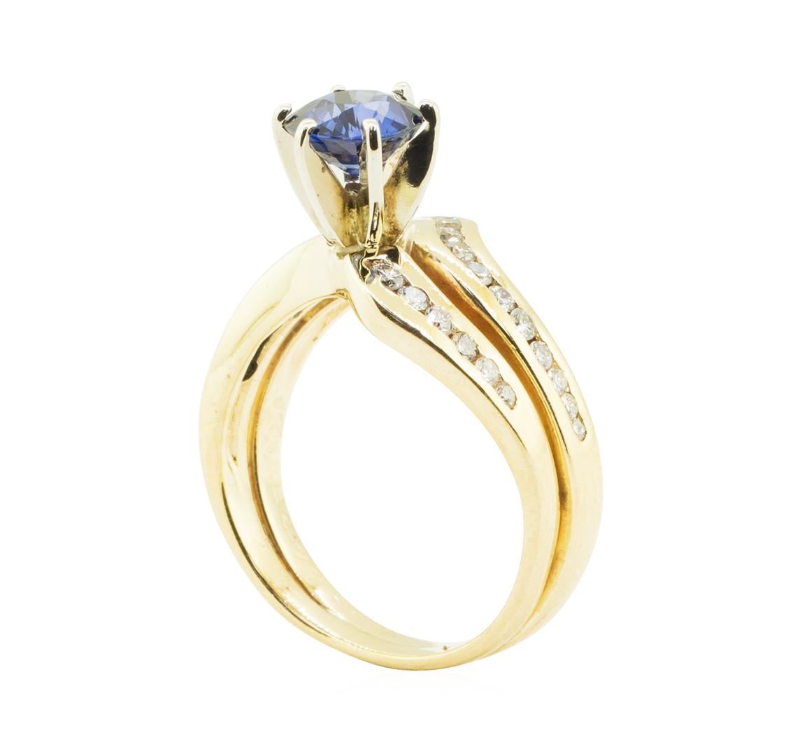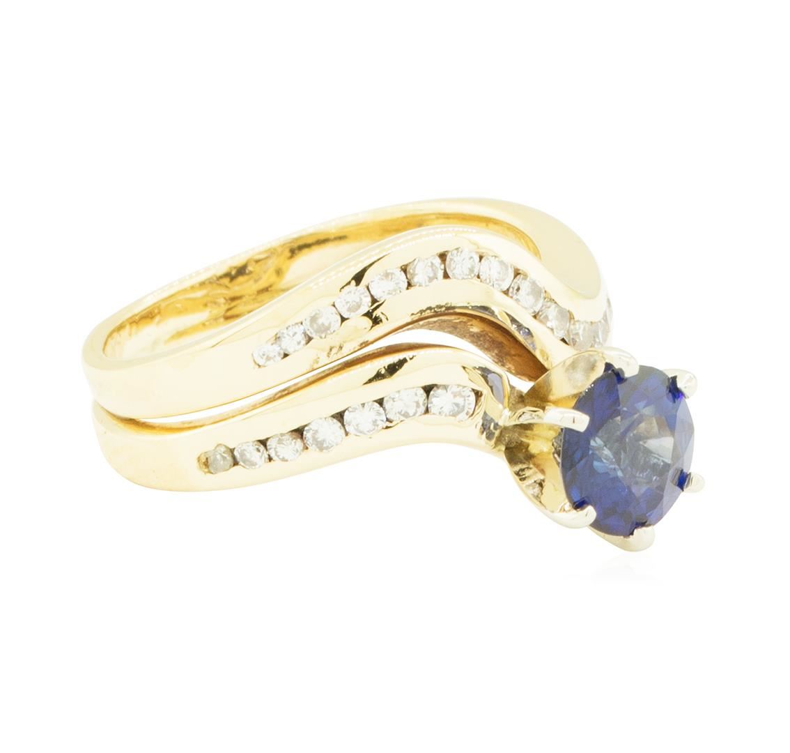One ring featuring: 14KT yellow gold weighing 6.5 grams containing one blue sapphire weighing 1.25ct and diamonds weighing 0.60 ctw