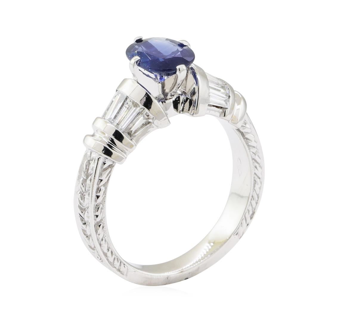One electronically tested 18KT white gold lady's combination cast & assembled fashion ring with a cathedral shank with a bright polish, hand-engraved detail finish. The featured lady's ring has a shank measuring 3.00 millimeters wide. Identified with mark