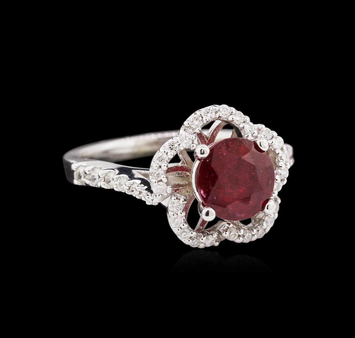 One ring featuring: 14KT white gold weighing 3.80 grams containing one ruby with a total weight of 1.87ct and diamonds with a total weight of 0.32ct.