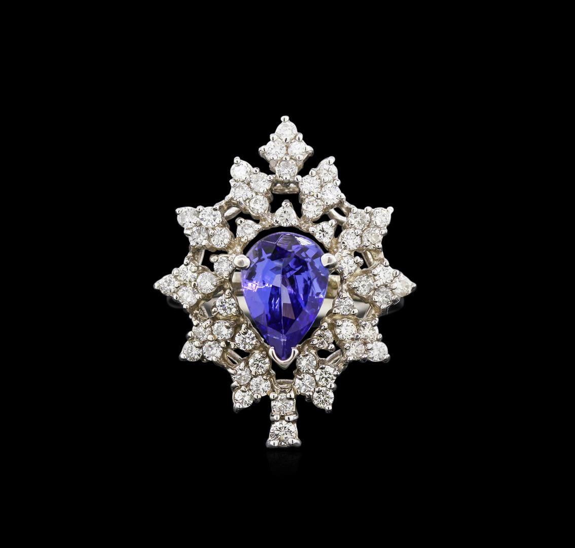 One ring featuring: 14KT white gold weighing 6.68 grams containing tanzanite center stone with a total weight of 1.87ct and 55 diamonds with a total weight of 0.98ct.