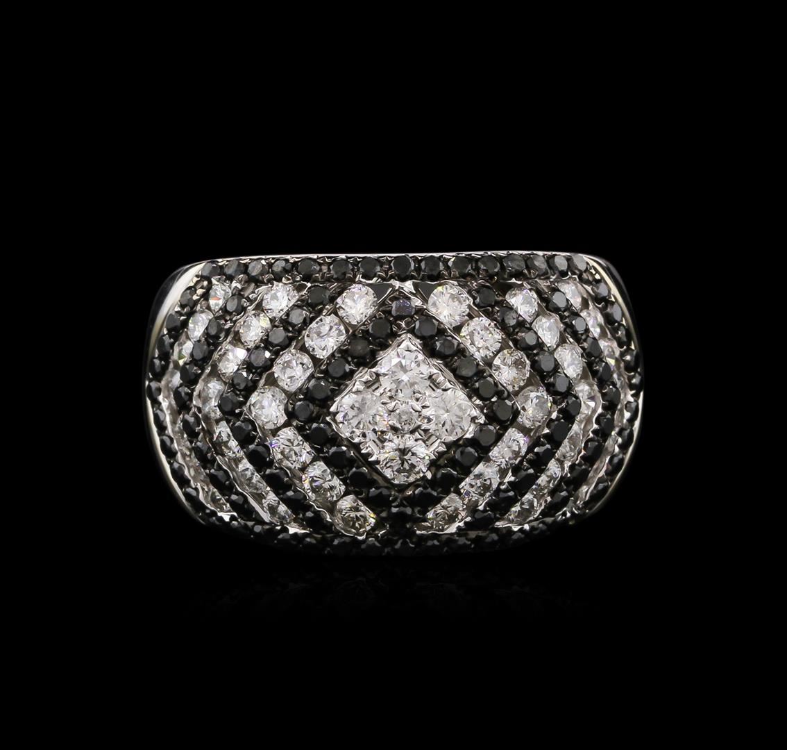 One electronically tested 14KT white gold ladies cast diamond ring with a bright polish finish. Identified with markings of "14K". Condition is new. Containing: One Hundred Nine prong set round brilliant cut diamonds, measuring 1.30 - 1.30 x 0.78mm (depth est.) approximate total weight of 109 Stones = 0.87ct. Cut is Good. Forty-Seven prong set round brilliant cut diamonds, measuring 2.00 - 1.50 x 1.05mm (depth est.) approximate total weight of 47 Stones = 1.00ct. Clarity: I-1 to I-2. Color: H - I, Cut is Good. Diamonds are graded in the mounting, unless otherwise stated. Total Weight of Diamonds 1.87ct. Total Weight of Ring 7.60 grams. GGL Appraised at $3,580.00.