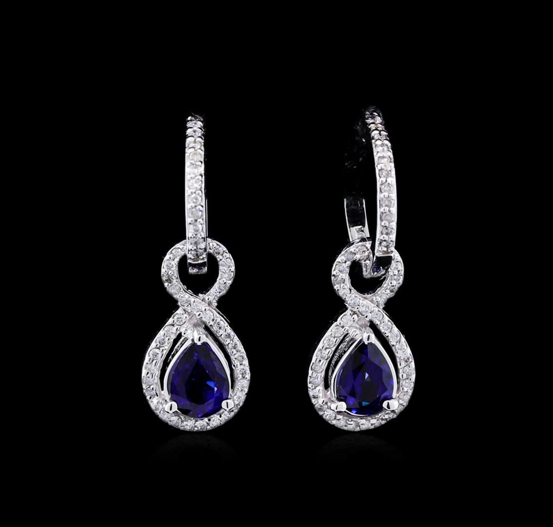 One pair of earrings featuring: 14KT white gold weighing 7.75 grams containing two blue sapphires with a total weight of 1.88ct and diamonds with a total weight of 0.50ct.