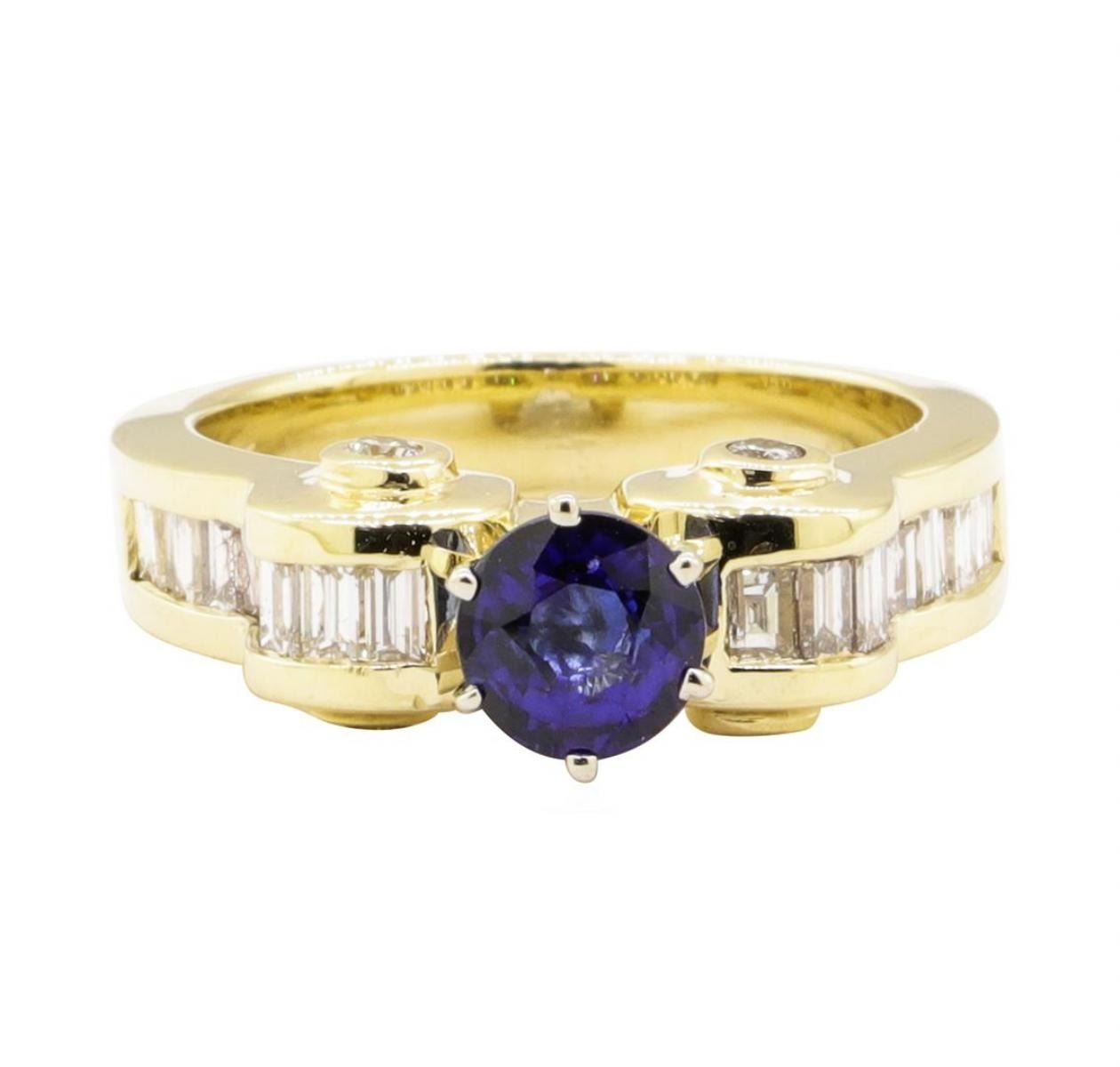 One electronically tested 14KT yellow gold lady's combination cast & assembled fashion ring with a straight line with curved shoulders with a bright polish finish. The featured lady's ring has a shank measuring 3.60 millimeters wide. Identified with marki