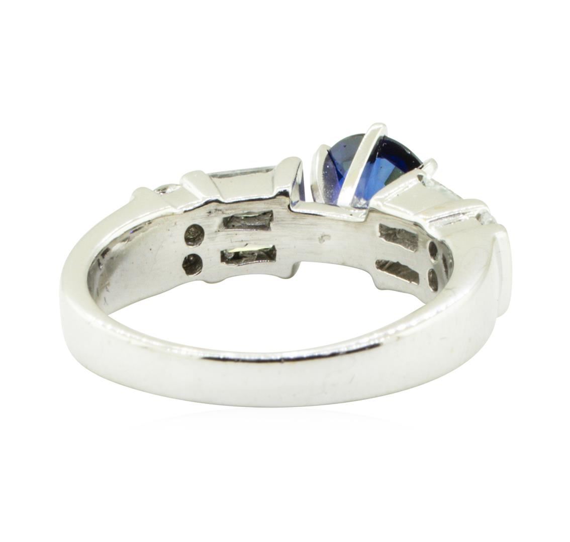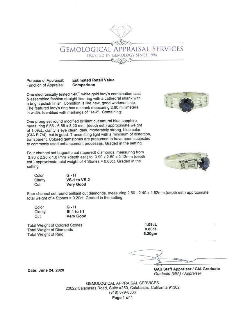 One electronically tested 14KT white gold lady's combination cast & assembled fashion straight line ring with a cathedral shank with a bright polish finish. The featured lady's ring has a shank measuring 2.80 millimeters in width. Identified with markings