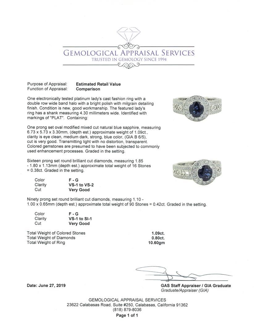 One electronically tested platinum lady's cast fashion ring with a double row wide band halo with a bright polish with milgrain detailing finish. The featured lady's ring has a shank measuring 4.30 millimeters wide. Identified with markings of 'PLAT'. Con