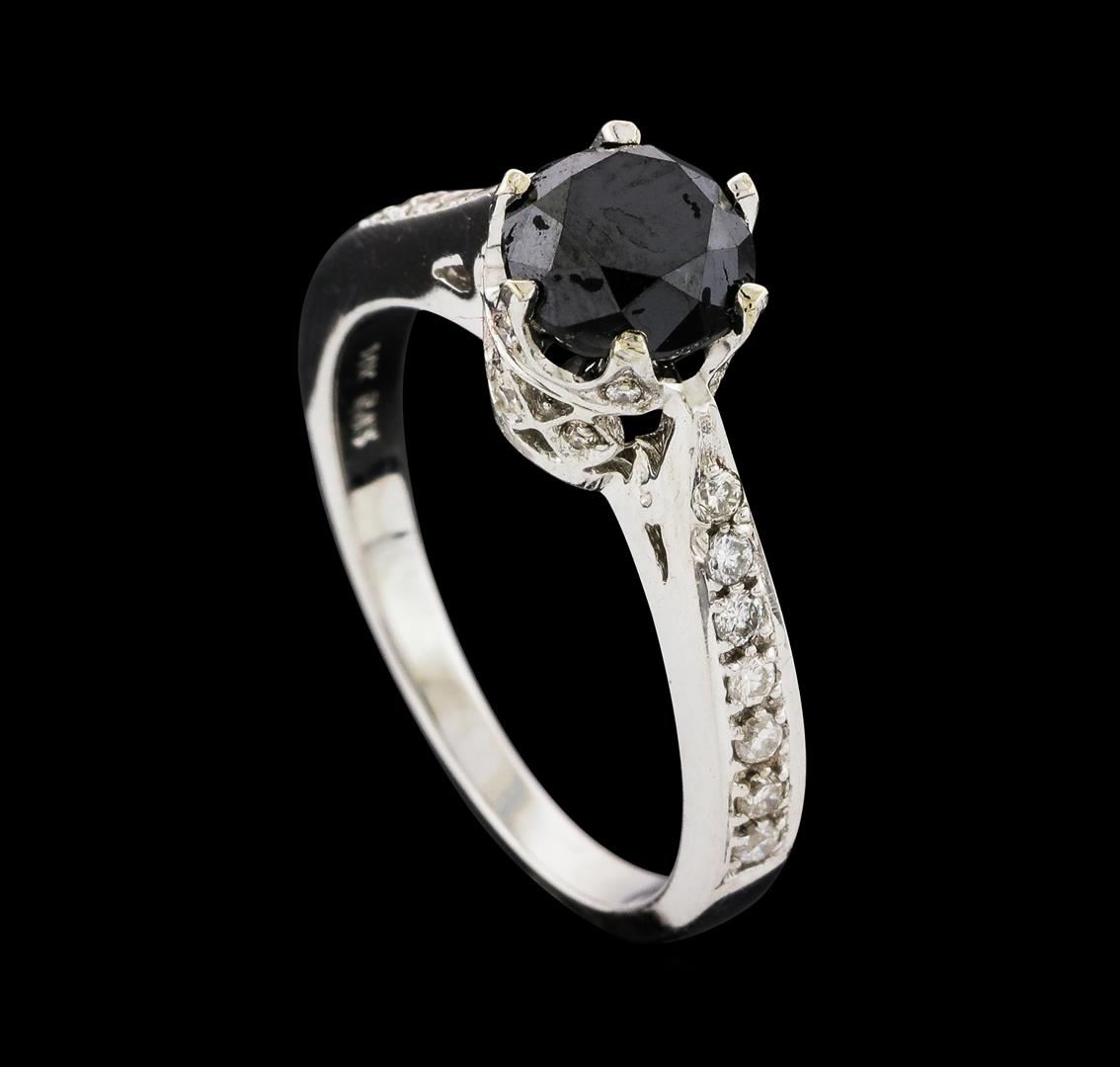 One electronically tested 14KT white gold lady's cast fashion ring with a cathedral shank with a bright polish finish. The featured lady's ring has a gallery resembling the profile view of a crown and has a shank measuring 1.98 millimeters wide. Identified with markings of '14K 585'. Condition is new, good workmanship. Containing: One prong set round brilliant cut diamond, measuring 6.79 - 6.76 x 4.95mm (depth est.) , 15.00.%. GTCF approximate weight of 1.59ct. Colored gemstones are presumed to have been subjected to commonly used enhancement processes. Graded in the setting. Cut Good Fourteen prong set round brilliant cut diamonds, measuring 1.70 - 1.50 x 0.99mm (depth est.) approximate total weight of 14 Stones = 0.23ct. Graded in the setting. Clarity SI-1 to I-1. Color: G - H Cut Good Twelve prong set round brilliant cut diamonds, measuring 1.20 - 1.15 x 0.74mm (depth est.) approximate total weight of 12 Stones = 0.08ct. Graded in the setting. Clarity SI-1 to SI-2. Color: G - I Cut Good. Total Weight of Diamonds 1.90ct.. Total Weight of Ring 4.40gm. GAS Appraised at $2,460.00.