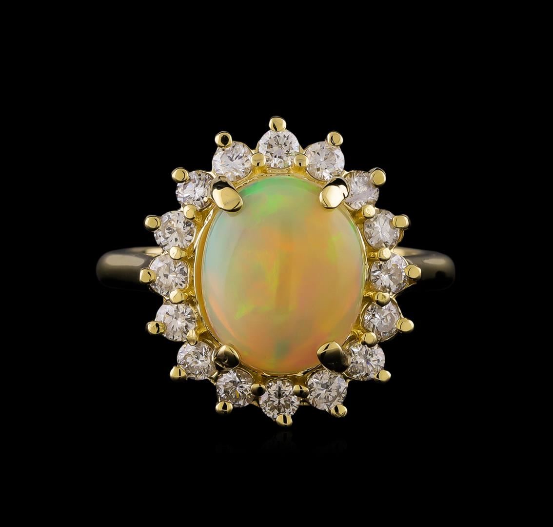 One ring : 14KT yellow gold weighing 5.37gm containing one opal center stone with a total weight of 1.90ct. and side diamonds weighing 0.75ctw.