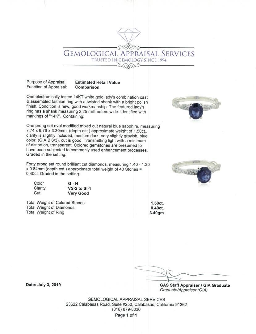 One electronically tested 14KT white gold lady's combination cast & assembled fashion ring with a twisted shank with a bright polish finish. The featured lady's ring has a shank measuring 2.25 millimeters wide. Identified with markings of '14K'. Condition