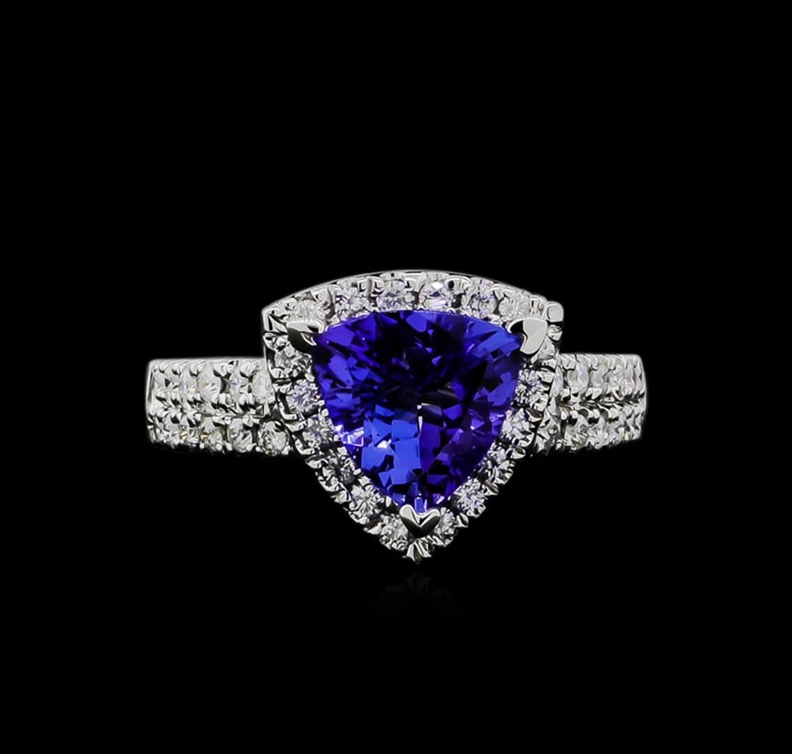 One ring featuring: 14KT white gold weighing 5.85 grams containing one tanzanite with a total weight of 1.90ct and side diamonds with a total weight of 0.50ct.