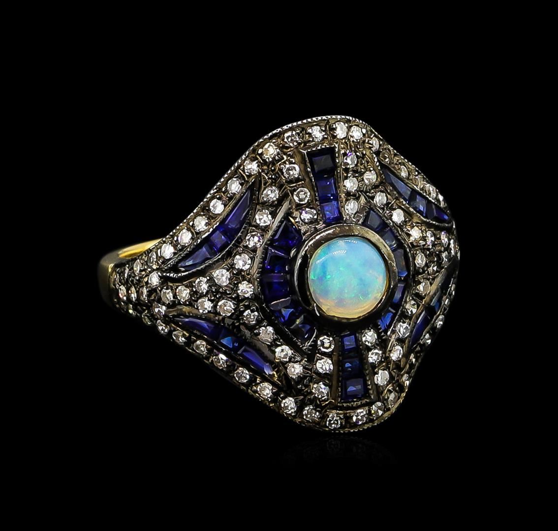 One ring featuring: 18KT yellow gold weighing 5.87 grams containing blue sapphires with a total weight of 1.90ct and one opal with a total weight of 0.35ct and diamonds with a total weight of 0.42ct.