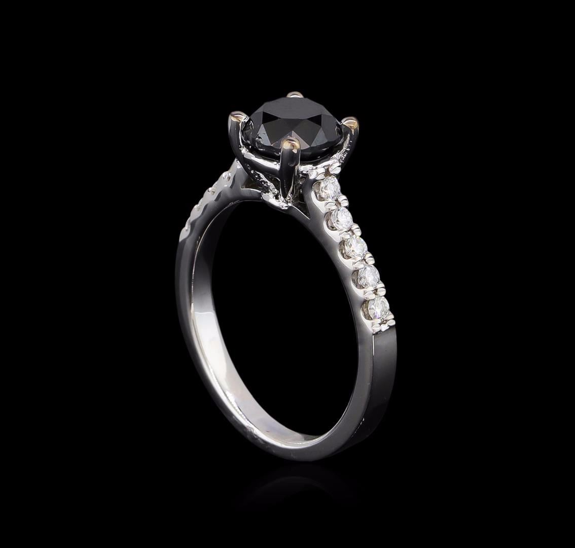 One ring featuring: 14KT white gold weighing 3.95 grams containing one black diamond with a total weight of 1.68ct and side diamonds with a total weight of 0.24ct.