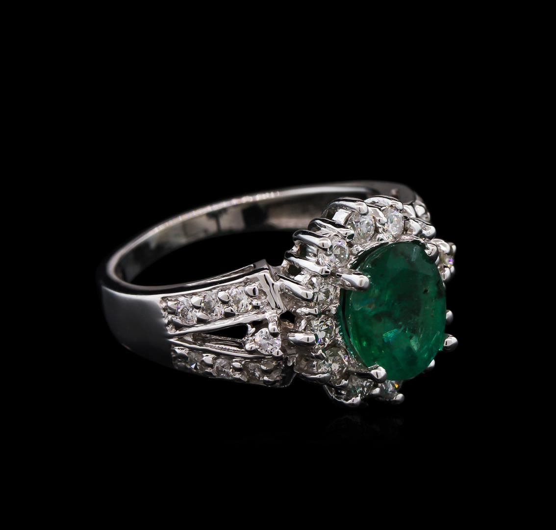 One ring featuring: 14KT white gold weighing 5.72 grams containing: one emerald with a total weight of 1.92ct and diamonds with a total weight of 0.69ct.