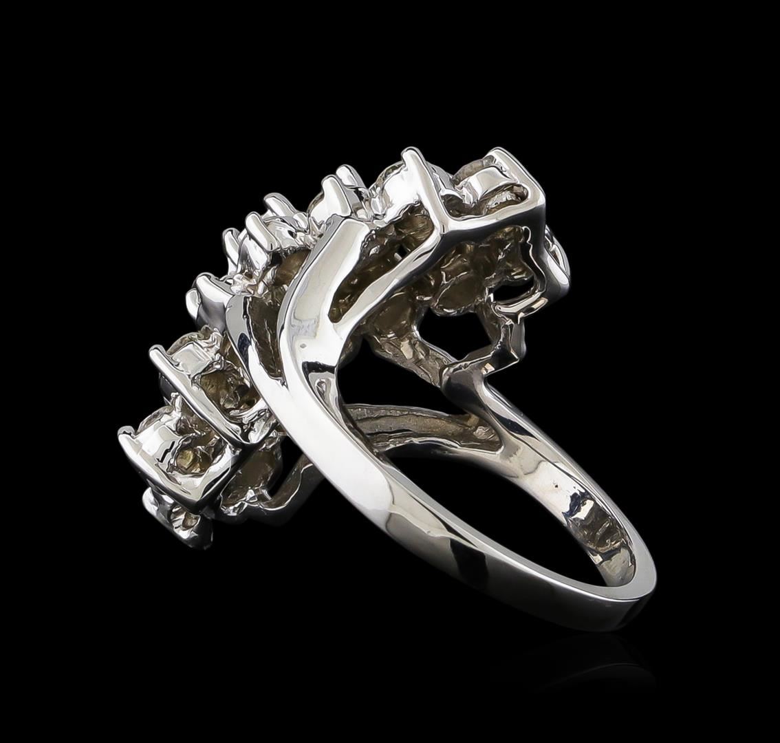 One electronically tested 14KT white gold lady's cast waterfall ring with a bright polish finish. The featured lady's ring has a shank measuring 2.11 millimeters wide. Identified with markings of "14K". Condition is new, good workmanship. Containing: Nineteen prong set round brilliant cut diamonds, measuring 3.10 - 3.00 x 1.83mm (depth est.) approximate total weight of 19 Stones = 1.95ct. Graded in the setting. Clarity: SI-1 to I-1. Color: H - I. Cut Good. Total Weight of Diamonds 1.95ct. Total Weight of Ring 8.20gm. GAS Appraised at $5,765.00.