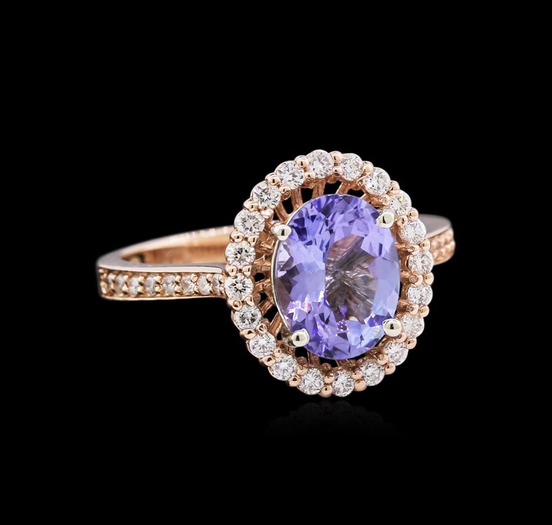 One ring featuring: 14KT rose gold weighing 3.04 grams containing one tanzanite with a total weight of 1.95ct and diamonds with a total weight of 0.41ct.