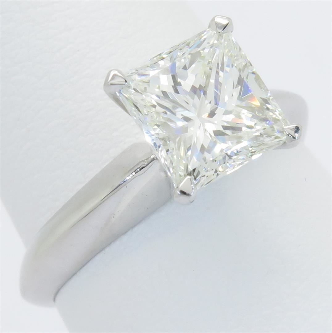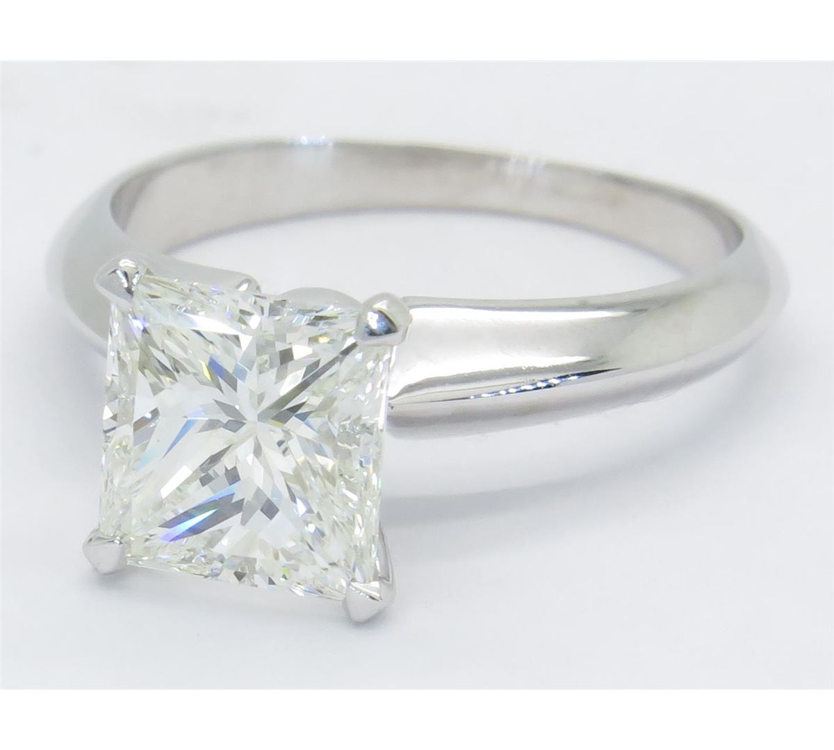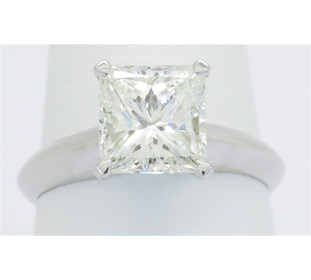 One tested 18K white Gold certified diamond ring. Containing: One IGI Certified Princess Cut Diamond. Size: 1.96CT, Clarity: VVS1, Color: H. Diamonds are graded in the mounting, unless otherwise stated. Weight of ring: 3.4 grams. Size: 5.5. IGI Appraised.