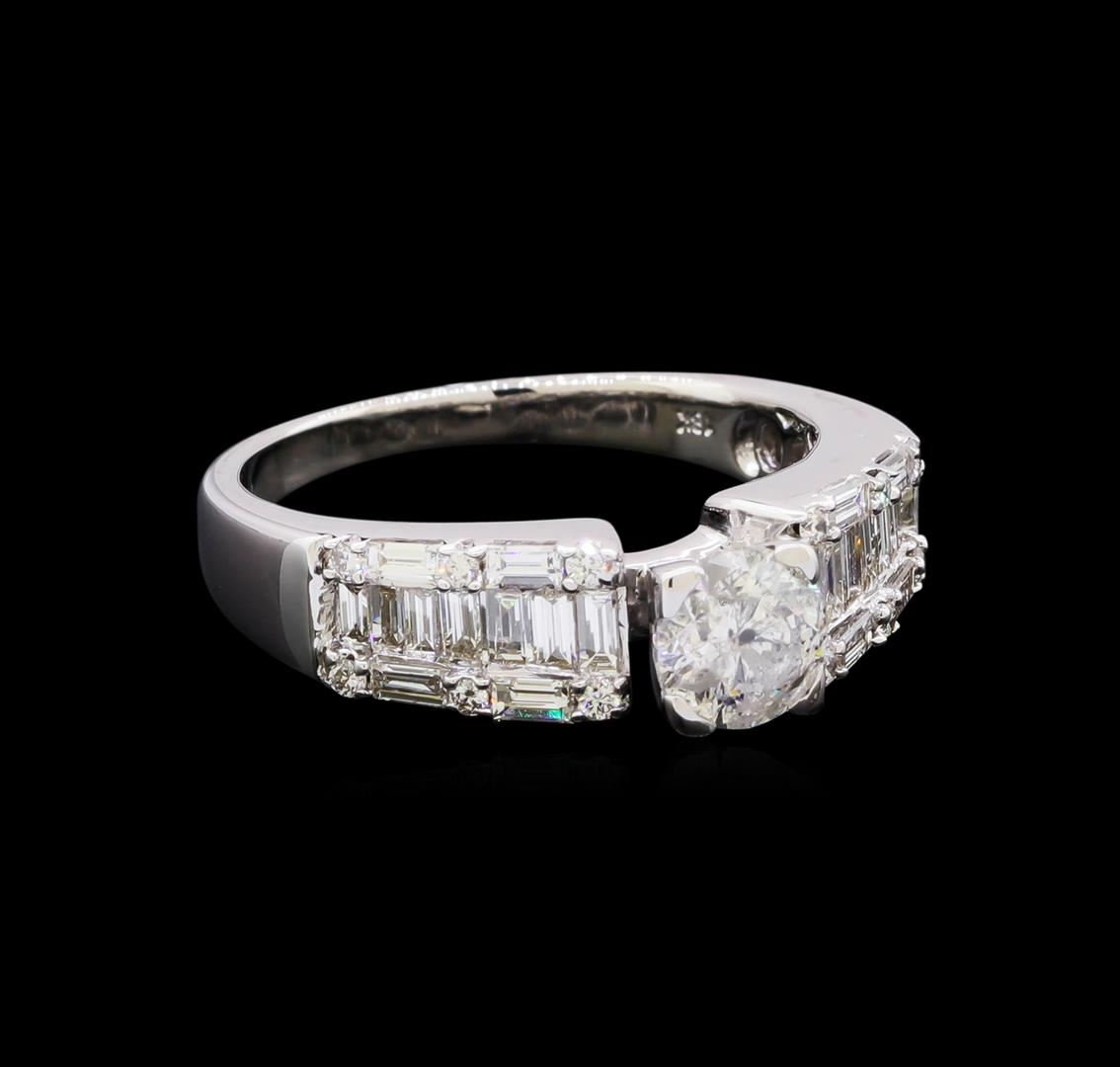 One electronically tested 18KT white gold lady's combination cast & assembled straight line wedding ring with a tapered shank with a bright polish finish. The featured lady's ring has a shank measuring 2.1 millimeters in width. Identified with markings of "18K". Condition is new, good workmanship. Containing: One prong set round brilliant cut diamond, measuring 5.68 - 5.65 x 3.40mm (depth est.) approximate weight of 0.71ct. Graded in the setting. Clarity: I-2. Color: H - I. Cut Good Twenty-Two channel set baguette cut diamonds, measuring from 2.30 x 1.40 x 1.19mm (depth est.) to 3.00 x 1.80 x 1.53mm (depth est.) approximate total weight of 22 Stones = 1.15ct. Graded in the setting. Clarity: VS-1 to VS-2. Color: G - Very Good Twelve prong set round brilliant cut diamonds, measuring 1.30 - 1.25 x 0.77mm (depth est.) approximate total weight of 12 Stones = 0.10ct. Graded in the setting. Clarity: VS-2 to SI-1. Color: G - Good. Total Weight of Diamonds 1.96ct. Total Weight of Wedding Ring 5.50gm. GAS Appraised at $7,315.00.